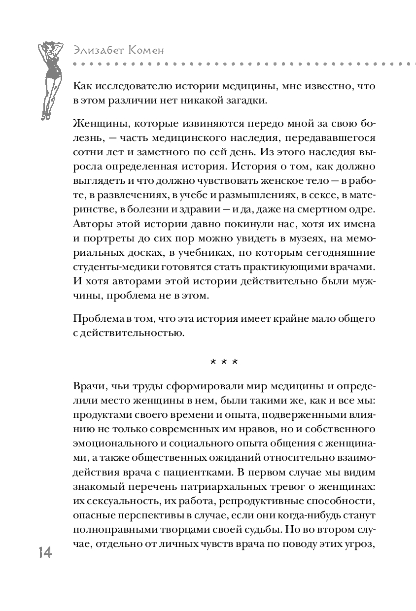 Шагая по одиннадцати системам организма – от мышц до гормонов, от нервов до иммунитета – автор проводит читателя от анатомического абсурда прошлого в будущее, где женщина не обязана доказывать, что ее боль реальна.