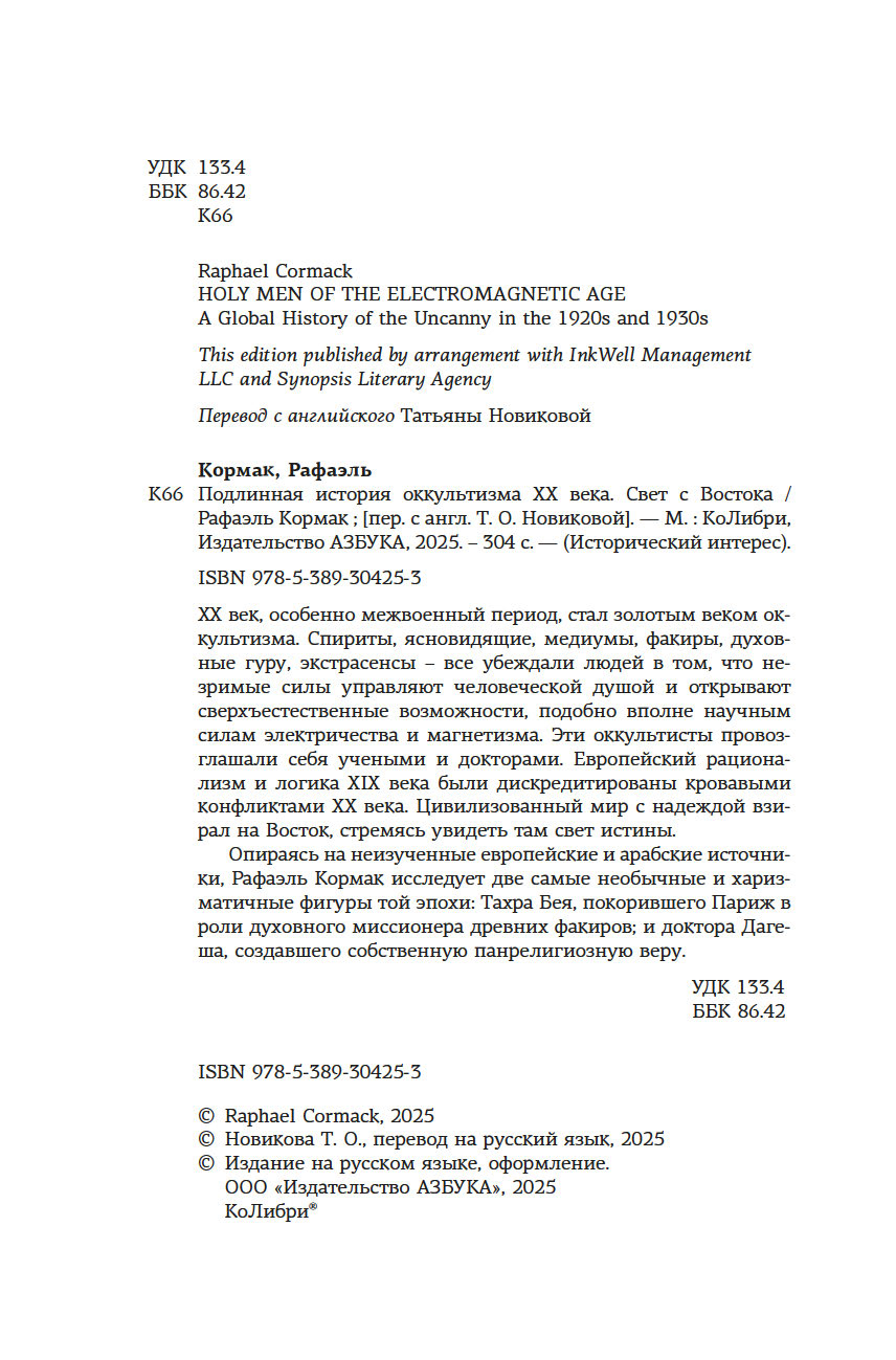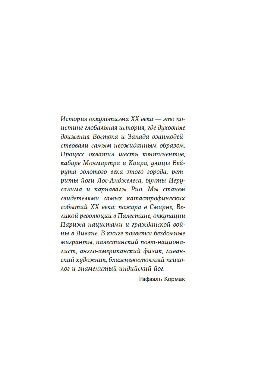 Опираясь на неизученные европейские и арабские источники, Рафаэль Кормак исследует две самые необычные и харизматичные фигуры той эпохи: Тахра Бея, покорившего Париж в роли духовного миссионера древних факиров и доктора Дагеша, создавшего собственную панрелигиозную веру.