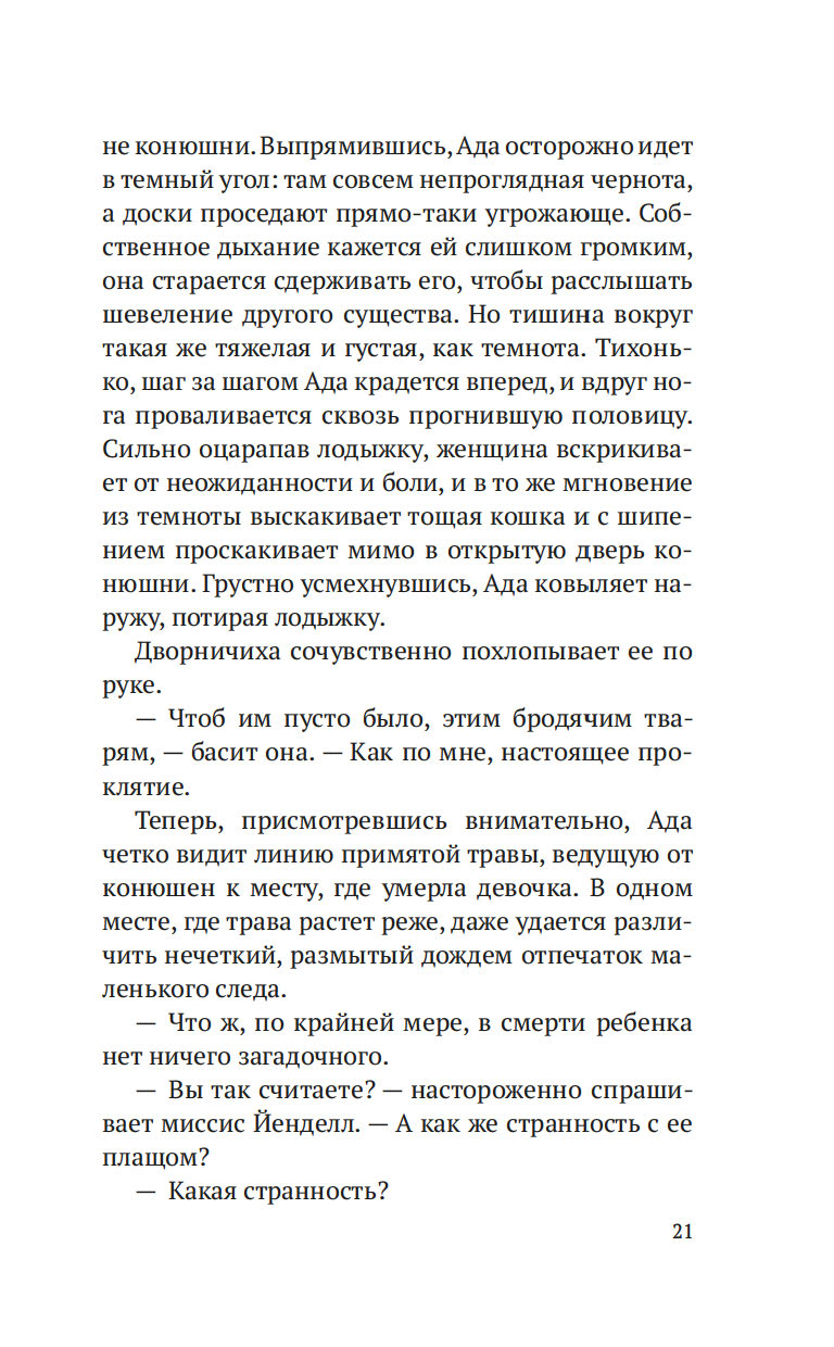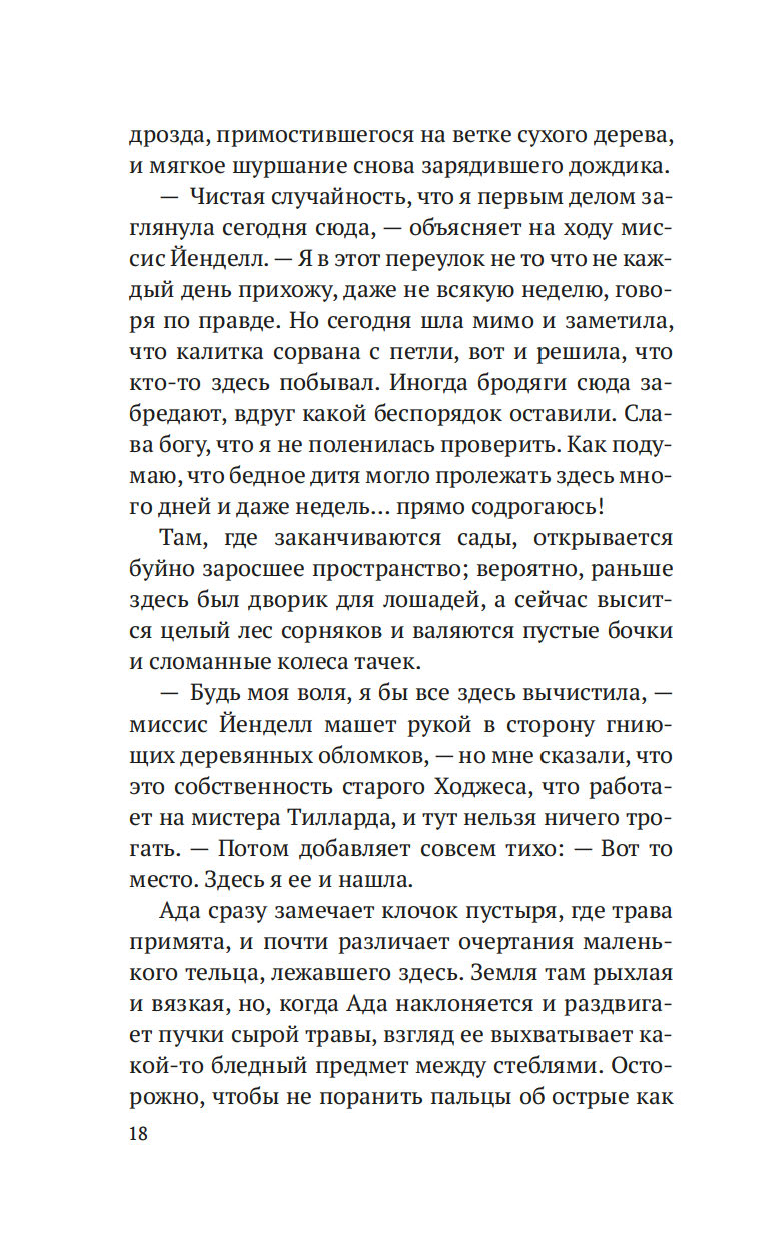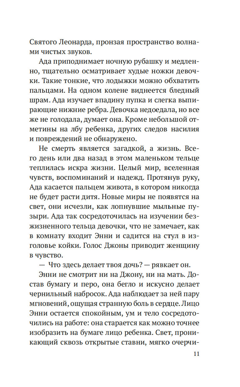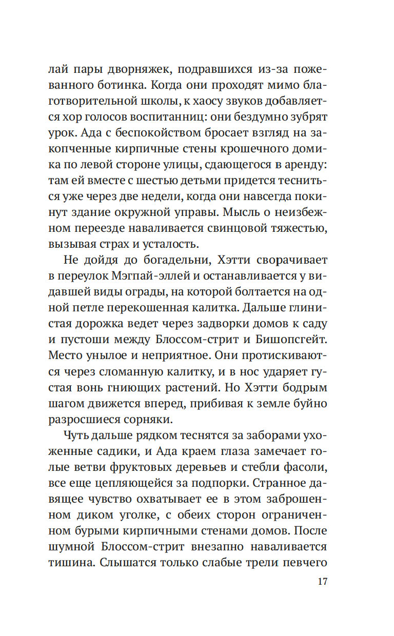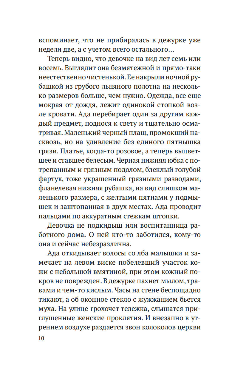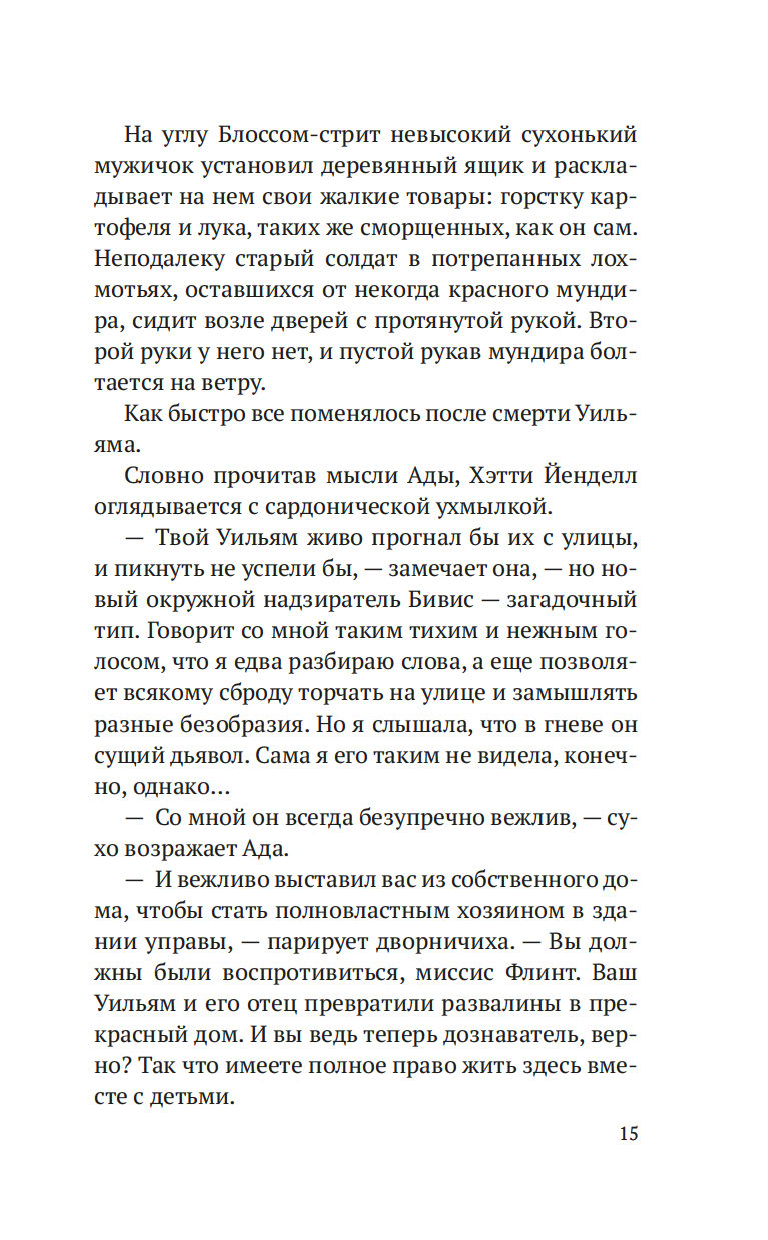 Лондон, начало XIX века. После внезапной смерти Уильяма Флинта, надзирателя округа Нортон-Фолгейт, его жена Ада остается одна с целым выводком детей. Из милости вдову назначают дознавателем при городской управе – работа сложная и невеселая, но Ада старается выполнять ее по совести. И когда на заброшенной конюшне обнаруживается труп восьмилетней девочки, Ада полна решимости выяснить, кем была малышка и кто ее родители. Однако загадки множатся, следствие то и дело заходит в тупик, и Ада вынуждена просить помощи у старого друга, художника Рафаэля Да Силвы…
