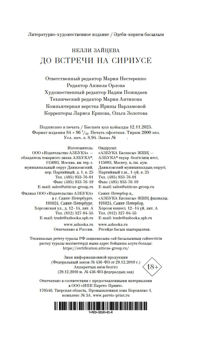| Изготовитель | ЗАО "Азбука". 198096, РФ, г. Санкт-Петербург, ул. Решетникова, д. 15 |