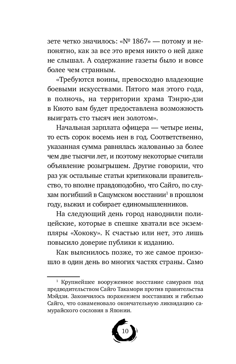 Япония, эпоха Мэйдзи. Таинственное объявление в газете обещает баснословный приз в 100 тысяч йен смельчакам, которые владеют боевыми искусствами и в определённую ночь явятся в храм Тэнрюдзи в Киото. 292 самурая, утративших свои привилегии, решают рискнуть. Среди них – Сага Сюдзиро, который готов на всё, чтобы спасти больную жену и дочь… но не готов к тому, с чем в итоге столкнётся.