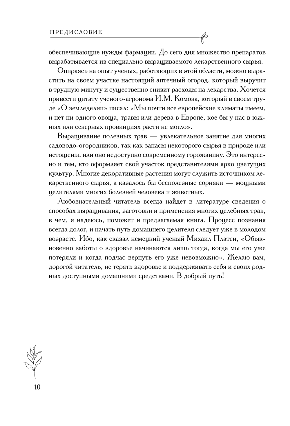 Один поход в аптеку может обойтись в несколько тысяч рублей, даже если у вас самая обычная простуда. Согласитесь, бьет по кошельку? А что, если вам самим начать выращивать лекарственные растения, которые сохранят здоровье вашей семьи и сберегут ее бюджет? В этой книге биолог, автор многочисленных бестселлеров о лесных и садовых растениях Татьяна Ильина поделится с вами, как можно вырастить, собрать, заготовить целебные травы, а также как применить их в медицине и ветеринарии.Вы научитесь:
