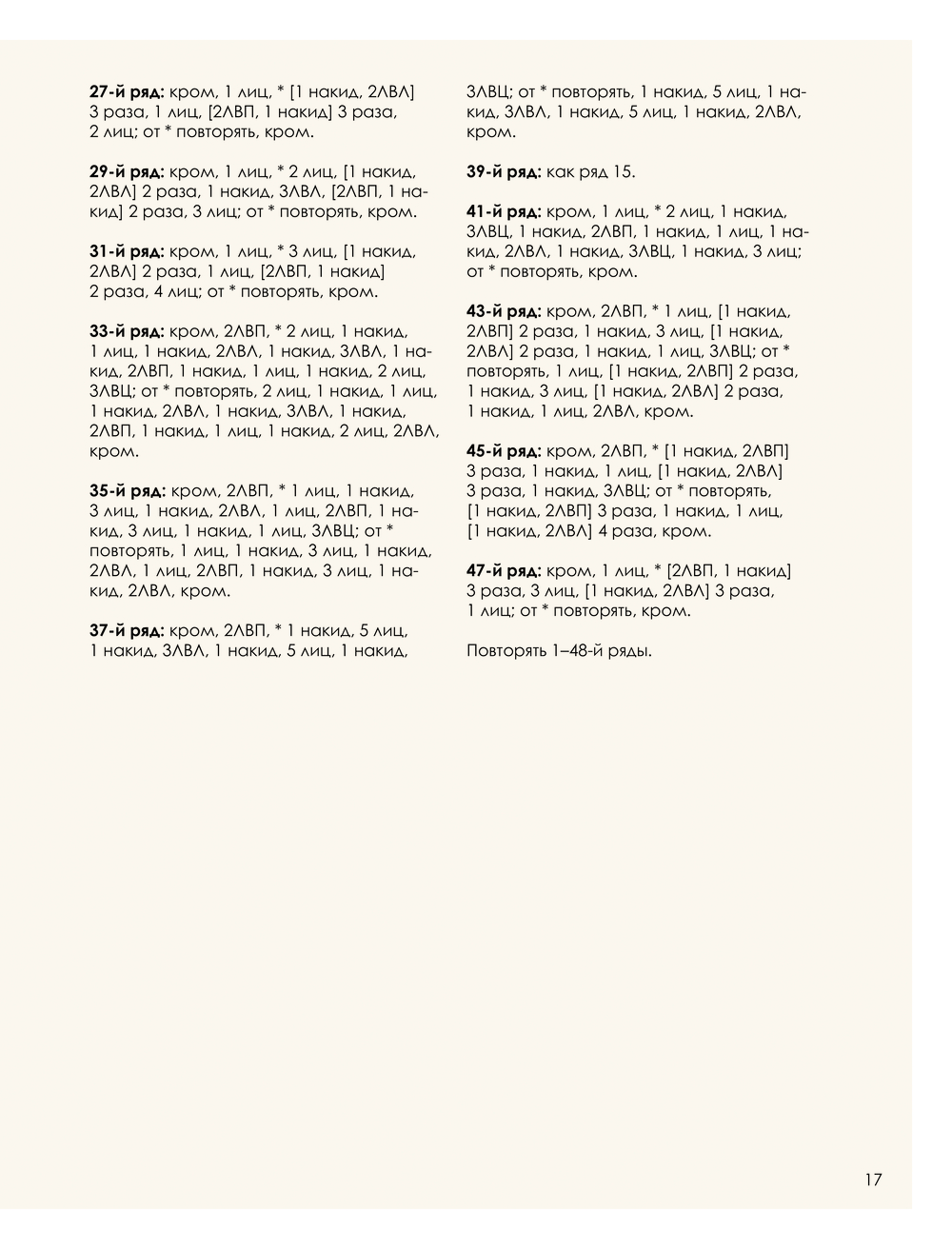 В общей сложности книга предлагает более 1700 вариантов комбинаций, открывающих безграничные возможности для творчества. Издание учитывает потребности вязальщиц разного уровня подготовки – от начинающих до опытных мастериц. Все схемы выполнены с особой тщательностью и сопровождаются понятными инструкциями, что делает процесс вязания приятным и комфортным.