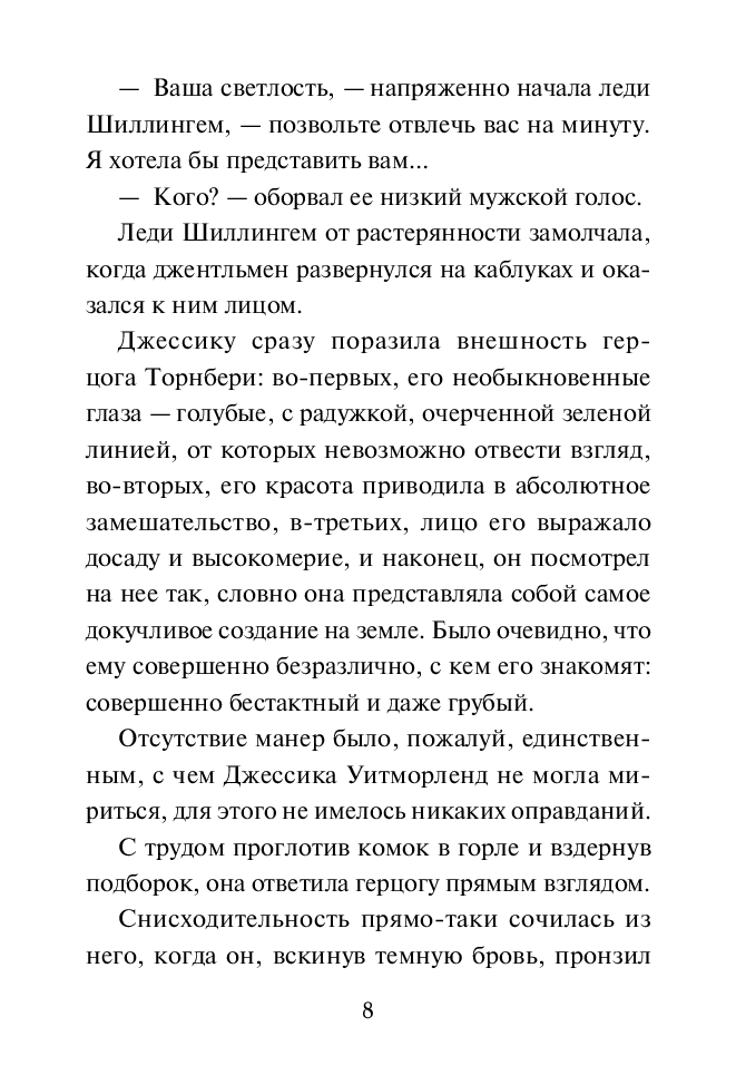 Эйден Торнтон, герцог Торнбери, – легкомысленный повеса, который и не думает остепениться. Одной мимолетной встречи с ним хватило, чтобы леди Джессика вычеркнула высокомерного грубияна из списка потенциальных женихов. Вот только Эйден не может забыть умную, дерзкую и острую на язык дебютантку, и вскоре герцог уже готов на все, лишь бы добиться любви и расположения девушки…