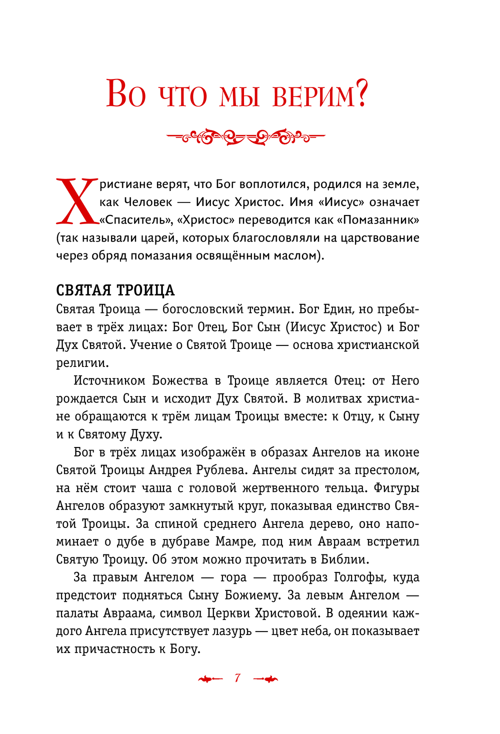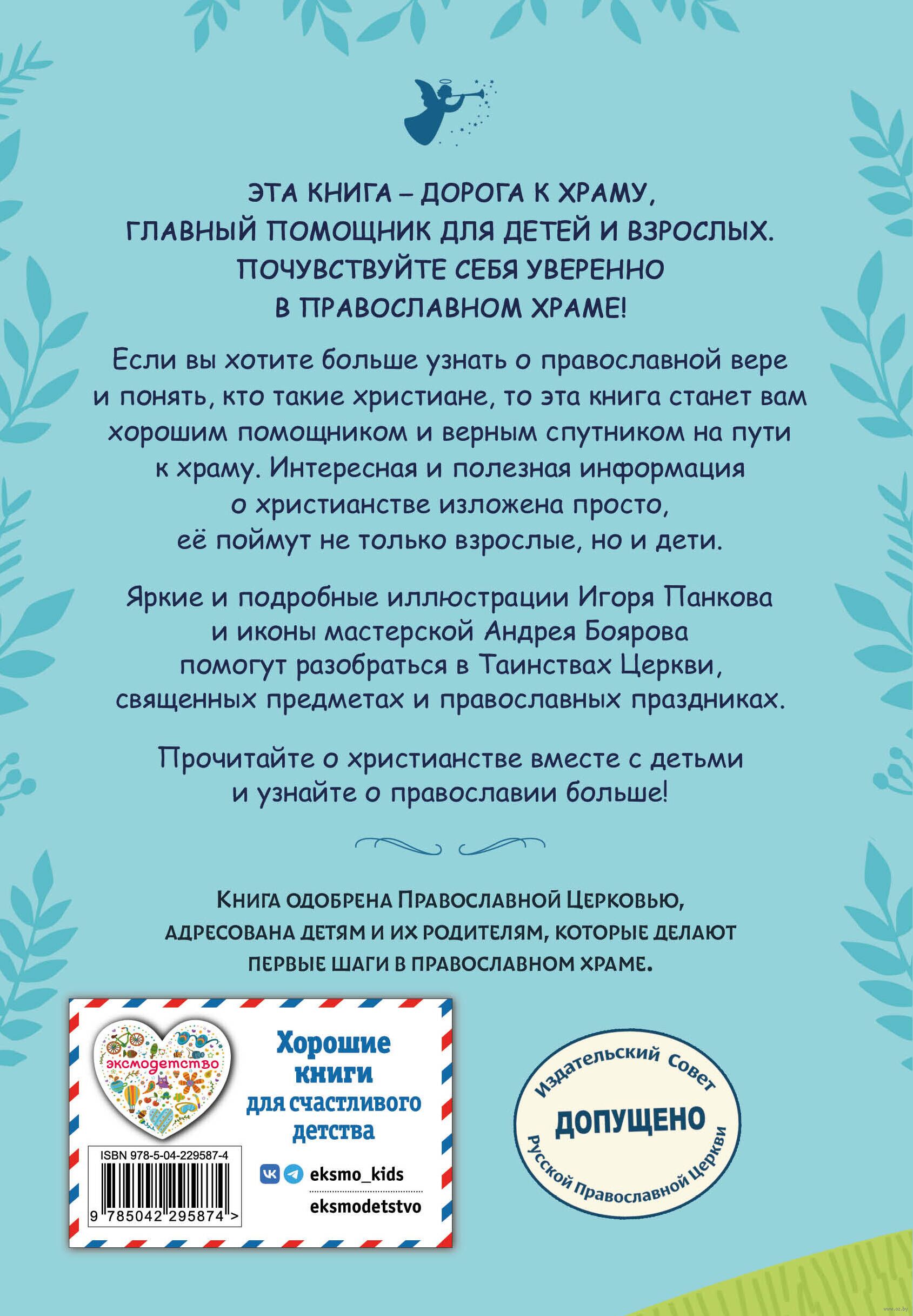 Если вы хотите больше узнать о православной вере и понять кто такие христиане, то эта книга станет вам хорошим помощником и верным спутником на пути к храму. Она покажет, как устроена православная церковь и расскажет о том, что там происходит. Интересная и полезная информация о христианстве изложена просто, её поймут не только взрослые, но и дети. А яркие подробные иллюстрации Игоря Панкова и иконы мастерской Андрея Боярова помогут разобраться в Таинствах Церкви, священных предметах и православных праздниках.