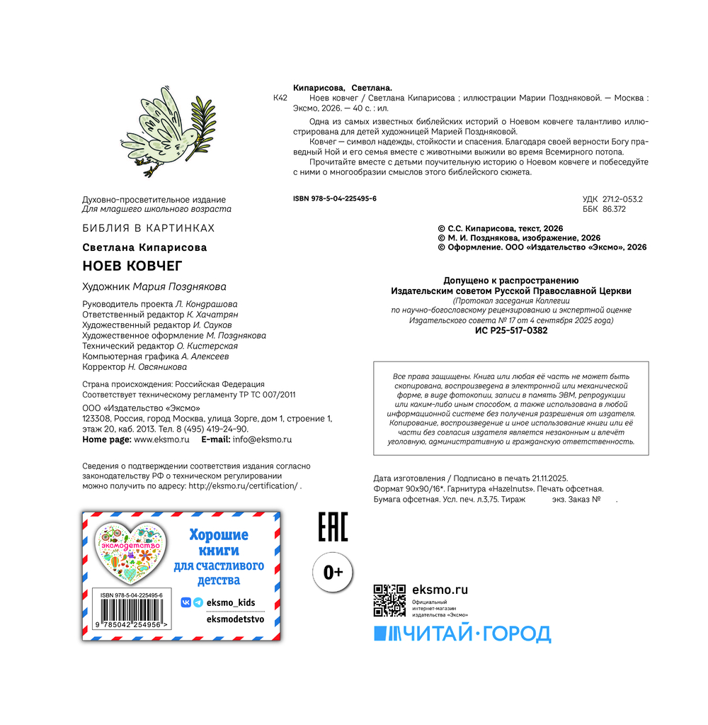 Одна из самых известных библейских историй о Ноевом ковчеге талантливо иллюстрирована для детей художницей Марией Поздняковой.