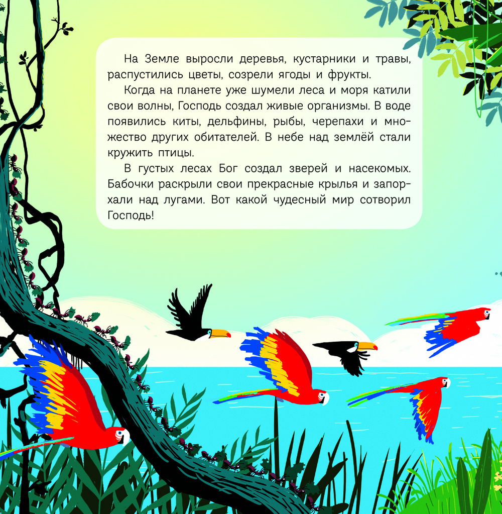 На страницах Библии для малышей – веселые, талантливые рисунки испанского художника Густаво Мазали. Как сеятель из притчи Иисуса Христа, эта книга посеет чудесные семена христианского воспитания в нежной детской душе. Ребёнок впервые узнает о героях Библии: о добром Ное и мудром Иосифе, о злом великане Голиафе и отважном пастушке Давиде, об Иисусе Христе и Его святом учении.