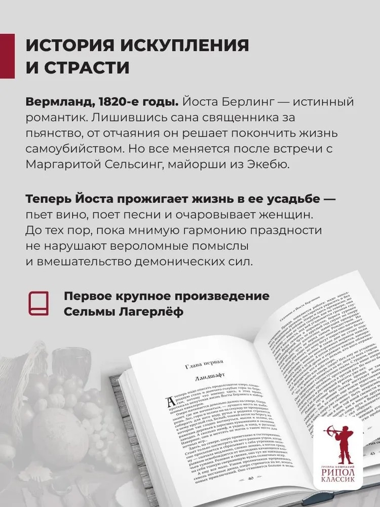 Вермланд, 1820-е годы. Йоста Берлинг – истинный романтик. Лишившись сана священника за пьянство, от отчаяния он решает покончить жизнь самоубийством. Но все меняется после встречи с Маргаритой Сельсинг, майорши из Экебю.