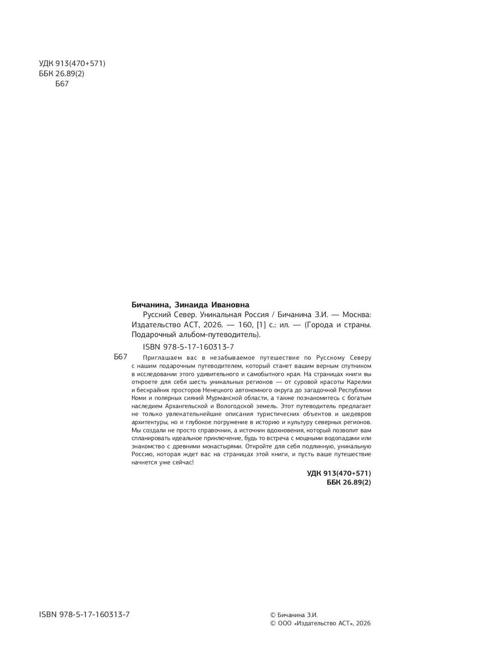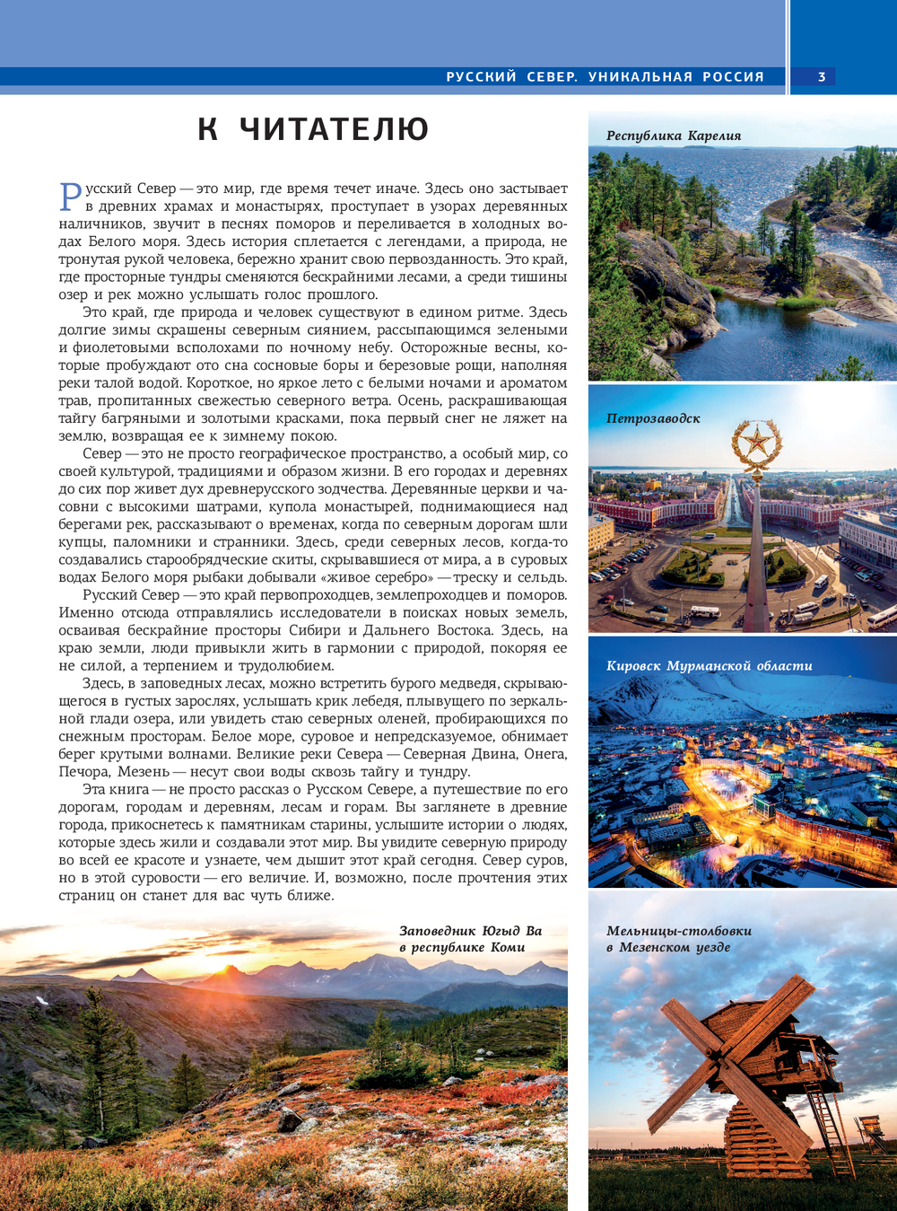 Приглашаем вас в незабываемое путешествие по Русскому Северу с нашим подарочным путеводителем, который станет вашим верным спутником в исследовании этого удивительного и самобытного края. На страницах книги вы откроете для себя шесть уникальных регионов – от суровой красоты Карелии и бескрайних просторов Ненецкого автономного округа до загадочной Республики Коми и полярных сияний Мурманской области, а также познакомитесь с богатым наследием Архангельской и Вологодской земель. Этот путеводитель предлагает не только увлекательнейшие описания туристических объектов и шедевров архитектуры, но и глубокое погружение в историю и культуру северных регионов. Мы создали не просто справочник, а источник вдохновения, который позволит вам спланировать идеальное приключение, будь то встреча с мощными водопадами или знакомство с древними монастырями. Откройте для себя подлинную, уникальную Россию, которая ждет вас на страницах этой книги, и пусть ваше путешествие начнется уже сейчас!
