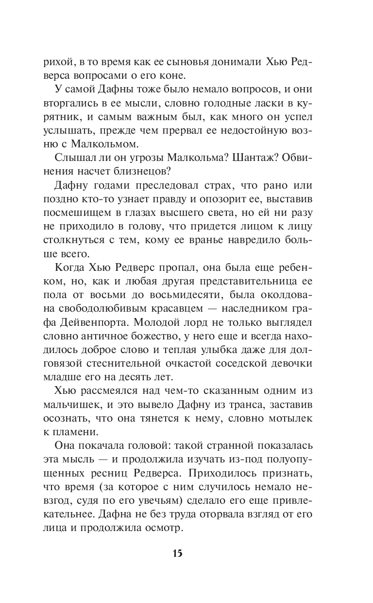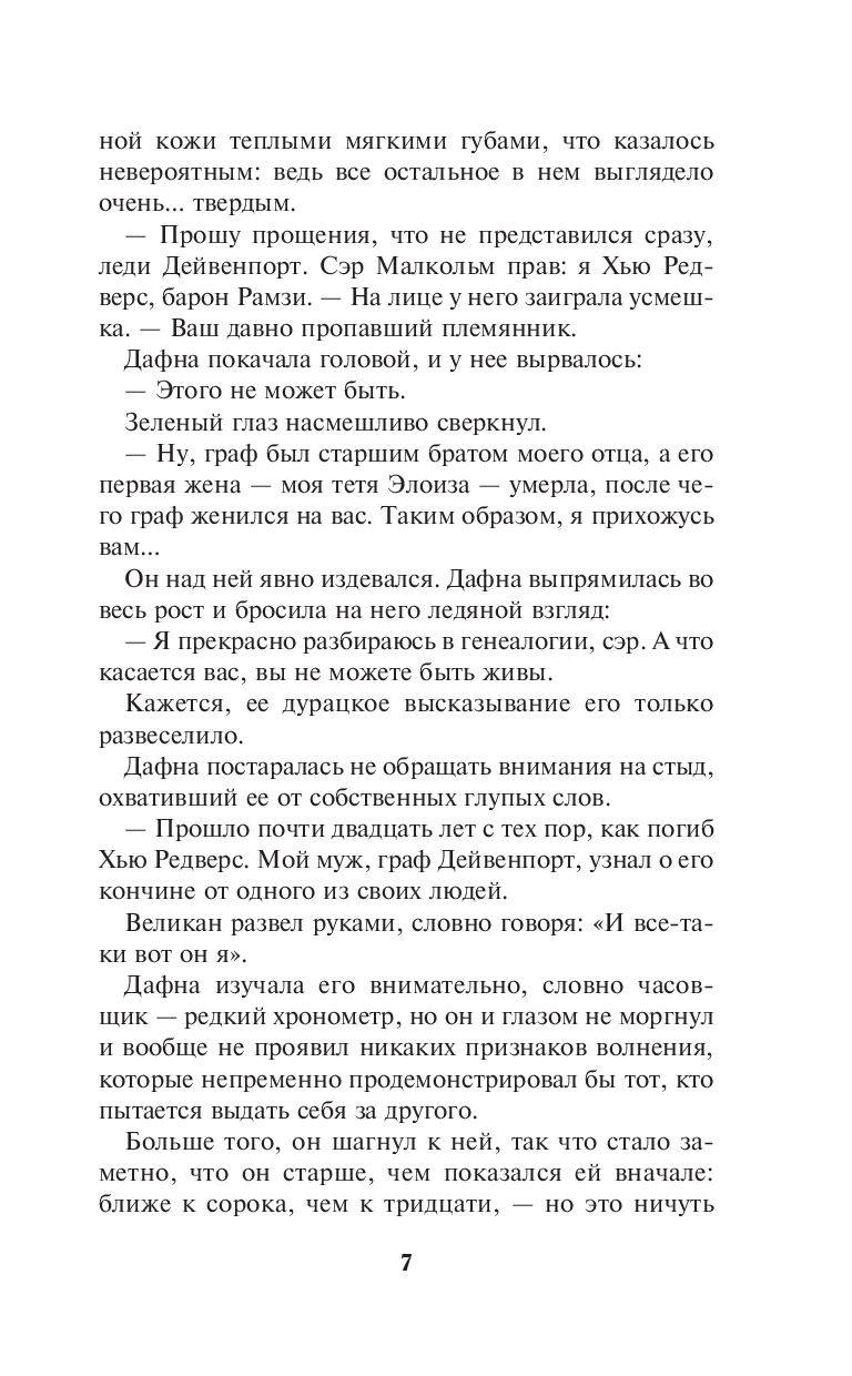 Хью Редверс долгие годы сидел в плену, а затем промышлял пиратством в Средиземном море и даже не вспоминал о том, что именно он – единственный законный наследник своего покойного дяди. Вернувшись домой, Хью с удивлением понимает, что его неудержимо влечет к "тетушке" – умной, образованной и очаровательной Дафне. Вот только она хранит страшную тайну, способную уничтожить их отношения…