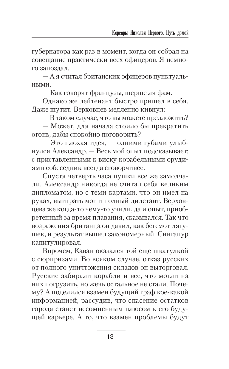 Ты прошел полмира. Раньше моряков пугали Морган и Черная Борода, а теперь они боятся встречи с тобой. Но все это не более чем мелкая возня на окраине земли. Главное же дело – оттянуть хотя бы часть сил врага от России – все еще впереди. Что же, за твоей спиной эскадра, впереди чужие моря, а далеко на севере Родина. И пускай врагов много, ты должен прорваться и совершить то, что должно. Ведь только победив можно завершить свою одиссею, как бы ни был сложен путь домой.