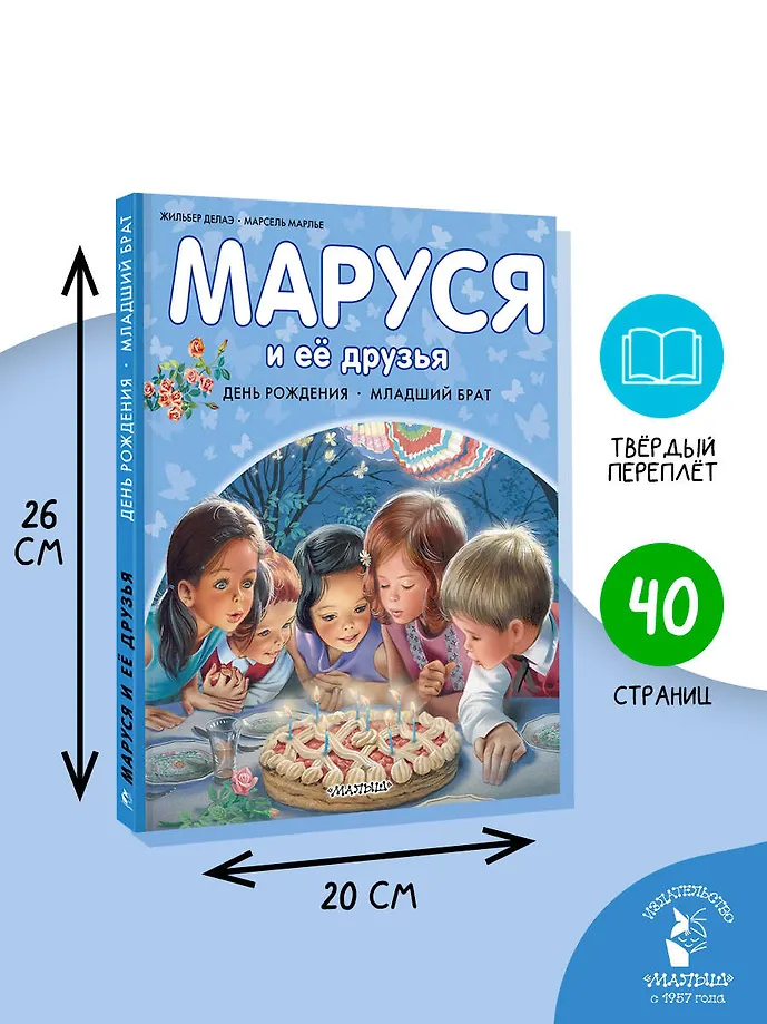 В книгу "Маруся и её друзья" вошли две истории об этой общительной девочке. В первой истории Маруся вместе с друзьями и семьёй устраивает весёлой праздник в честь своего дня рождения. Вкусные угощения, подарки, фейерверки – всё, что так любят дети! А во второй истории Маруся остаётся дома за старшую и ухаживает за младшим братиком. Эта книжка прекрасно подготовит старшего ребёнка к появлению нового члена семьи!
