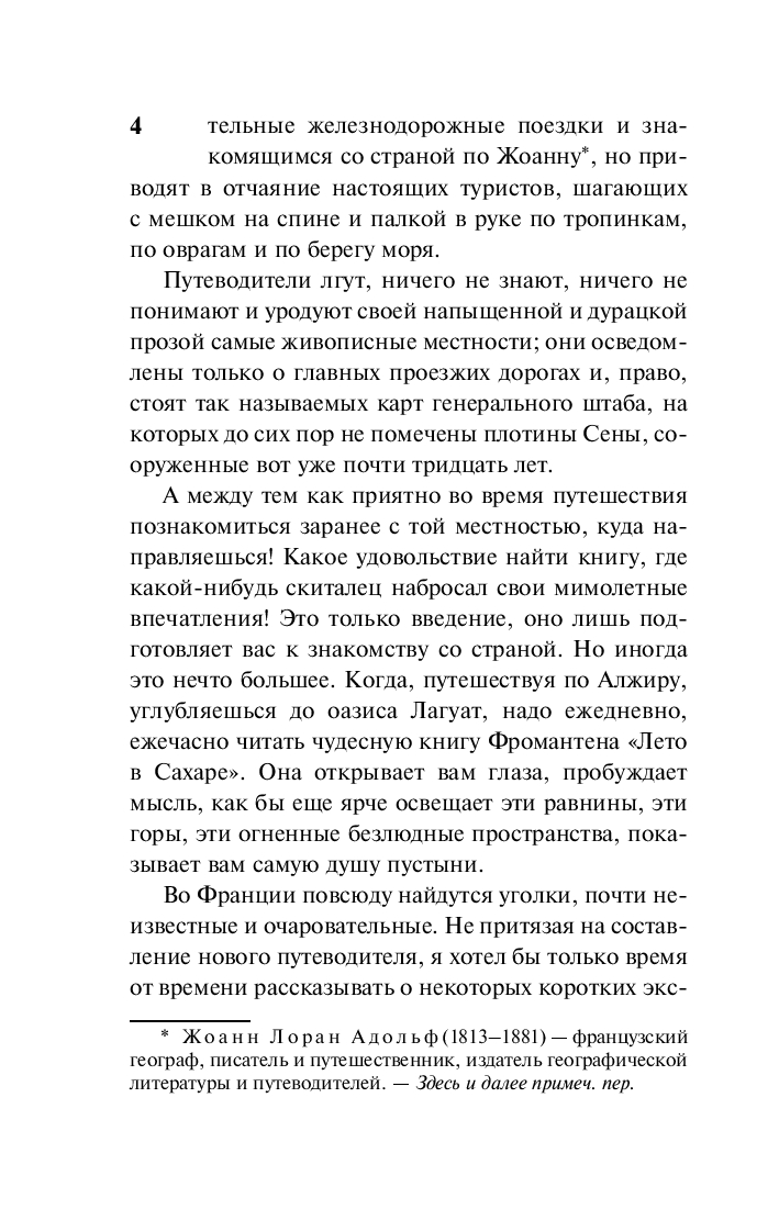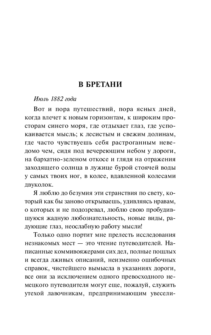 Временами Ги де Мопассан, способный насквозь видеть человеческие души, испытывал невыносимое желание сбежать из Парижа – от ненавистной Эйфелевой башни, бесконечных толп на столичных улицах, примелькавшихся мест и назойливых мыслей. В такие моменты Мопассан отправлялся в другие страны и к чужим берегам, ведь "путешествие, – писал он, – это своего рода дверь, через которую выходишь из знакомой действительности, чтобы перейти в действительность неизведанную, кажущуюся сном".