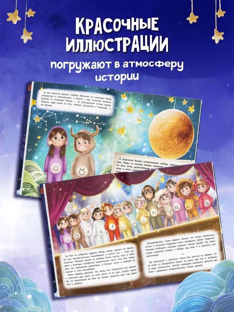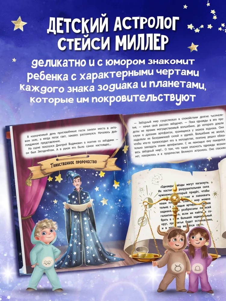 Автор – детский астролог Стейси Миллер – деликатно и с юмором знакомит ребёнка с характерными чертами каждого знака и планетами, которые им покровительствуют.