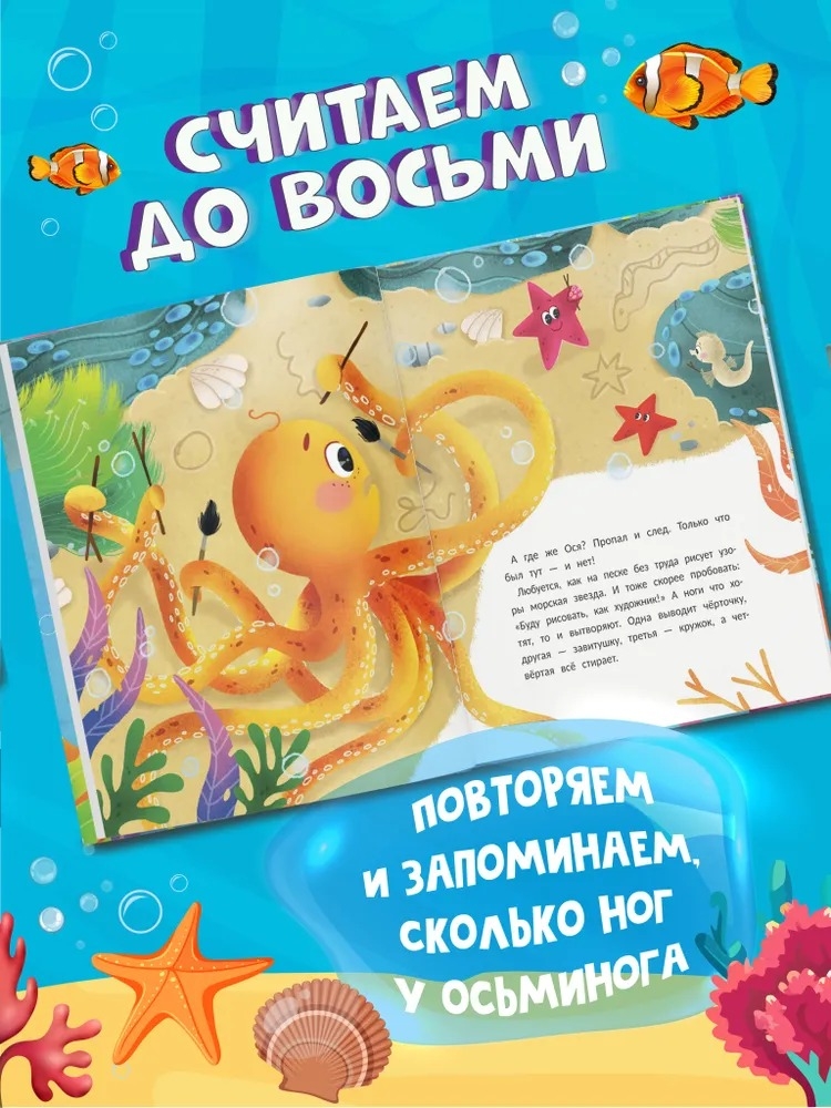 Осьминога Осю вечно не найти: то в ракушке спрячется, то за камни заплывёт. Да Ося и сам себя найти не может: чем ему лучше заняться – не знает. Пробовал шить – иглой морского ежа укололся, стал бить чечётку, как крабы, – ноги узлом завязались...