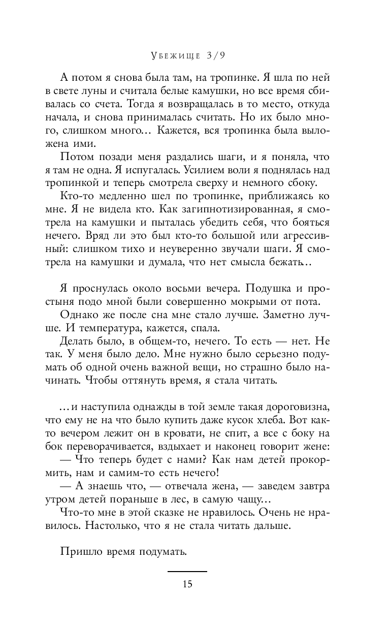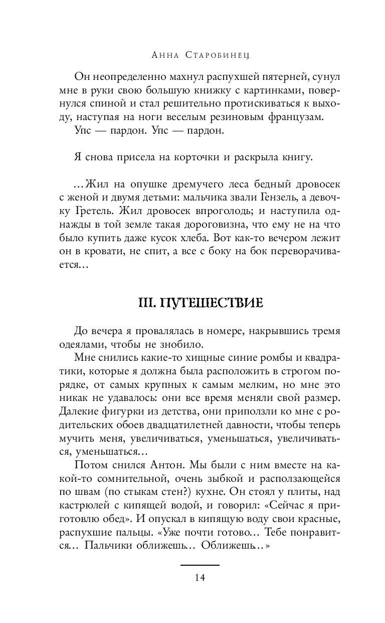 Фотокорреспондентка Маша во время парижской командировки вдруг с недоумением замечает, что от неё шарахаются окружающие. То, что начинается как классический "обмен телами", трансформируется в жуткую и затягивающую многоуровневую фантасмагорию. Будничная жизнь внезапно оборачивается страшной сказкой. Любое действие, произведенное в привычной реальности, зловещим эхом отзывается в сказочном отражении. А вскоре и конец света становится по-настоящему близок и страшен. Жанровый эксперимент, на который пошла Анна Старобинец, не имеет аналогов в русской литературе!