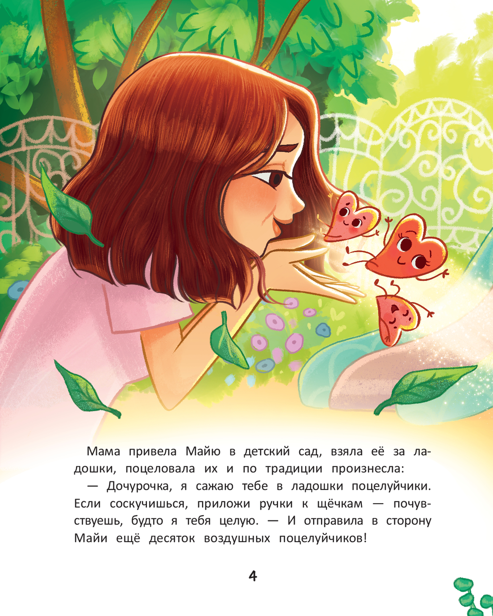 В них самая искренняя забота, самая верная поддержка, самая настоящая любовь и созидание. Как мы это узнали? Однажды у девочки Майи потерялись мамины поцелуйчики... Их унёс игривый летний ветерок. Поцелуйчики старались вернуться к девочке и по пути пролетали мимо тех, кто оказался в беде, был расстроен или напуган. Как по волшебству сложным ситуациям находилось решение. А может, это было вовсе не волшебство, а сила любви маминых поцелуйчиков.