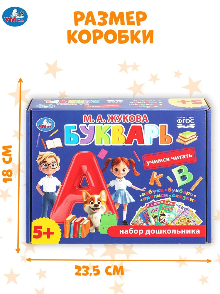 Этот замечательный набор станет отличным подарком для любого дошкольника. В его состав входят букварь М. А. Жуковой и пособие "Скоро в школу", которые помогут будущему ученику познакомиться с буквами и сделать первые шаги в обучении грамоте. Также в наборе ребёнок найдёт прописи для тренировки письма и брошюры со сказками для чтения по слогам.