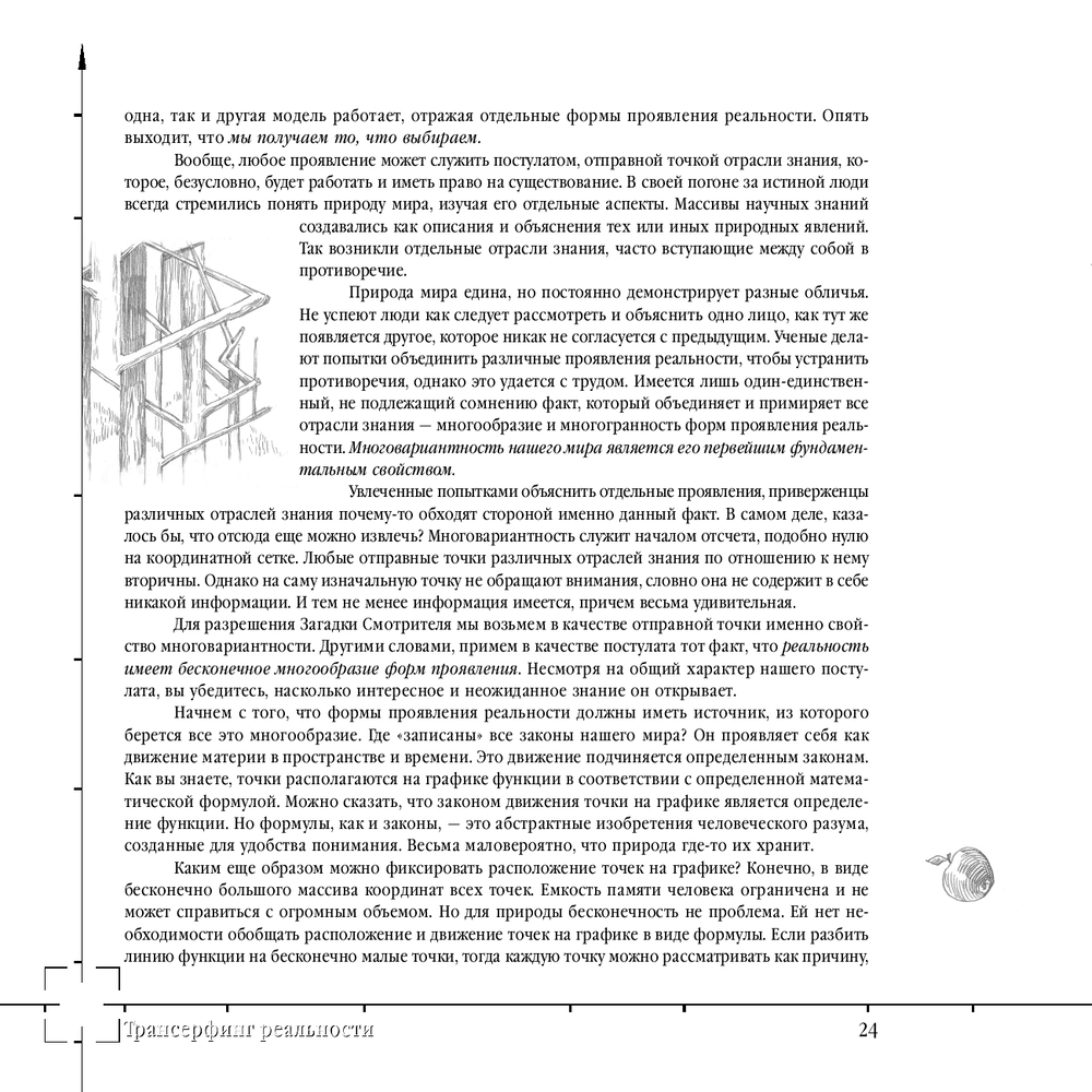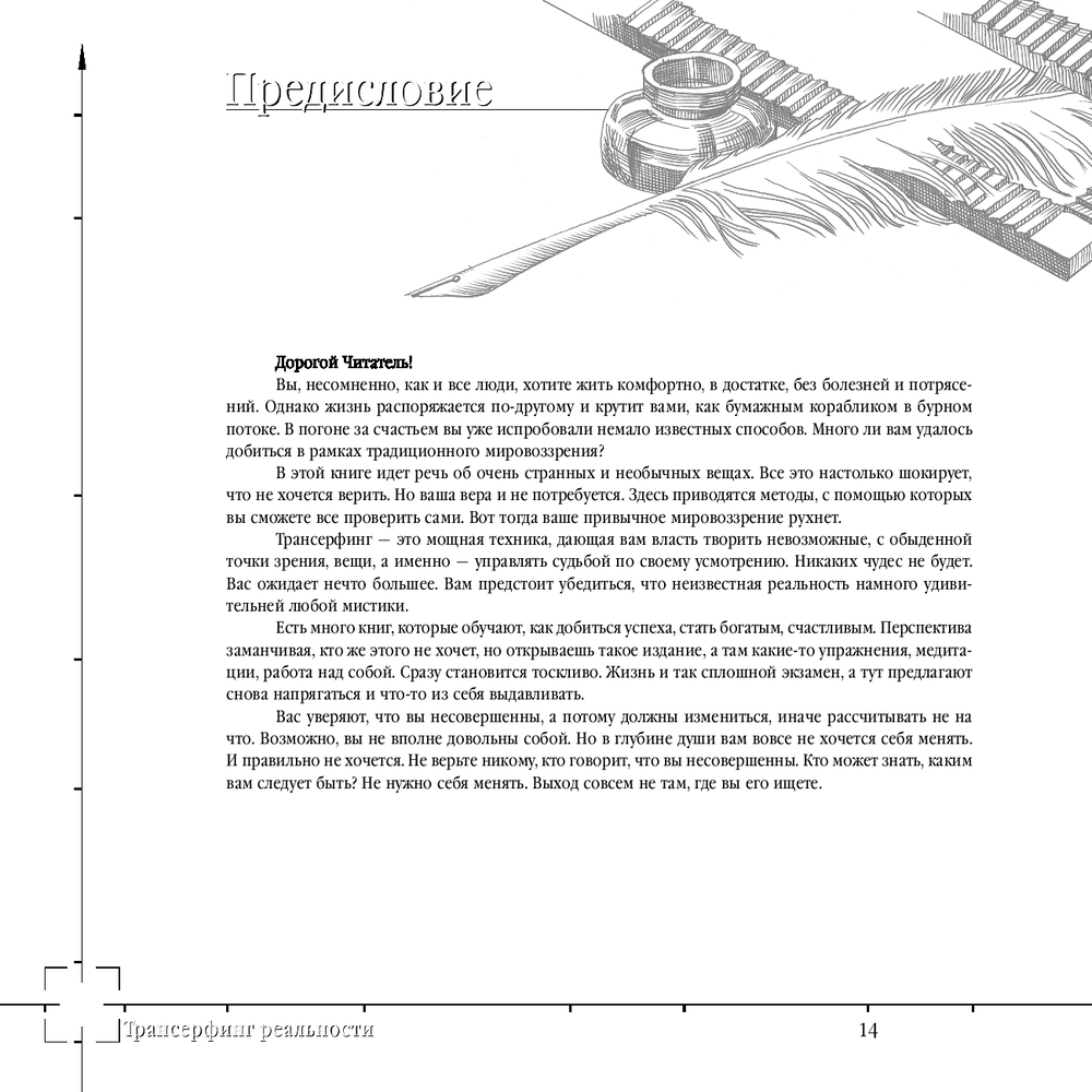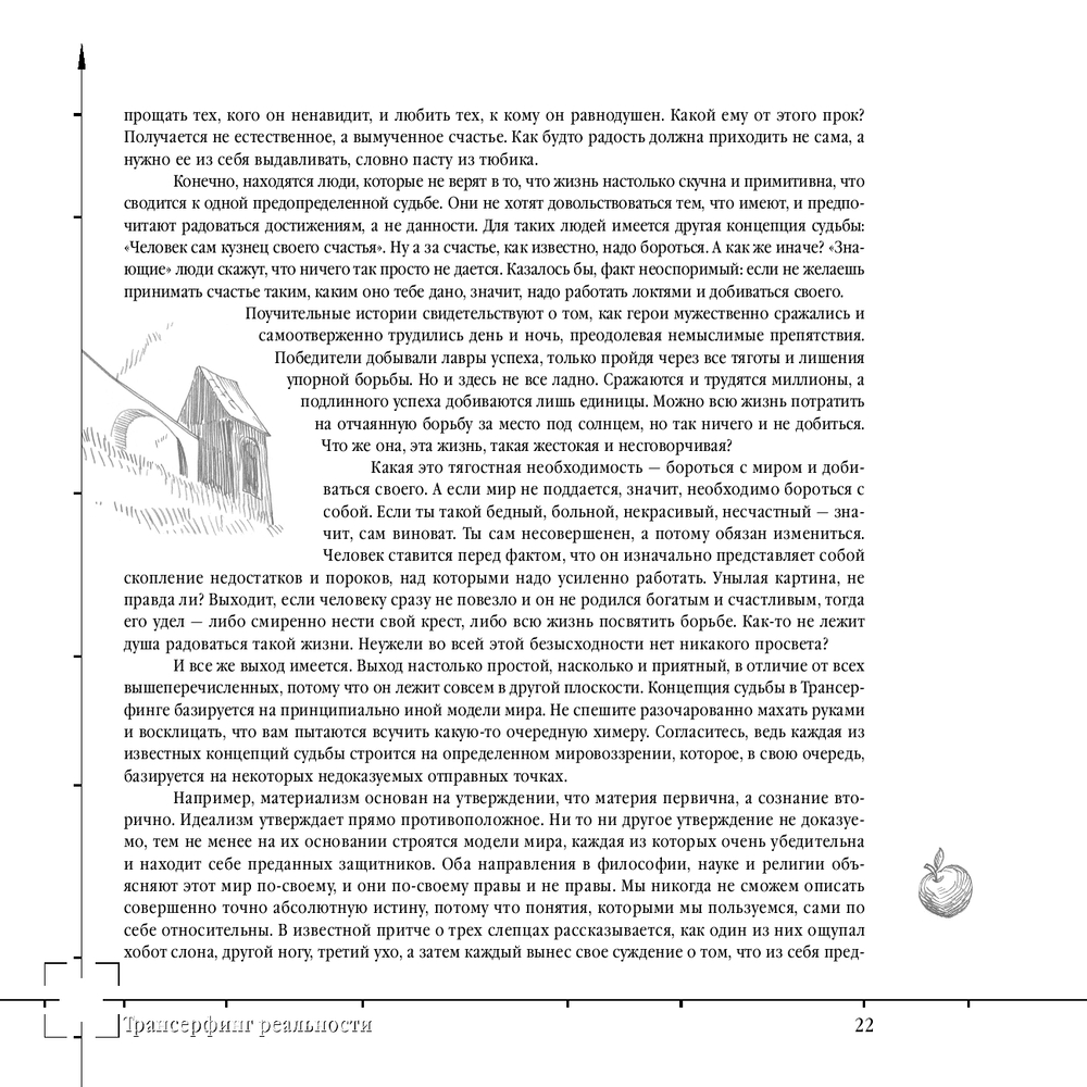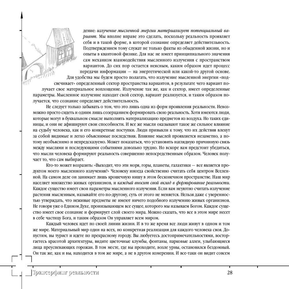 Трансерфинг – это мощная технология управления реальностью. Стоит применить её, и жизнь начнёт меняться под ВАШ заказ. Цель при использовании Трансерфинга не достигается, а реализуется по большей части сама. В это невозможно поверить, но только с первого взгляда. Трансерфинг – это технология управления реальностью. Несмотря на всю фантастичность идей, изложенных в книге, они уже нашли практическое подтверждение. Те, кто пробовал заниматься Трансерфингом, испытали удивление, граничащее с восторгом. Окружающий мир трансерфера непостижимым образом меняется буквально на глазах. Здесь нет места мистике – это реально.