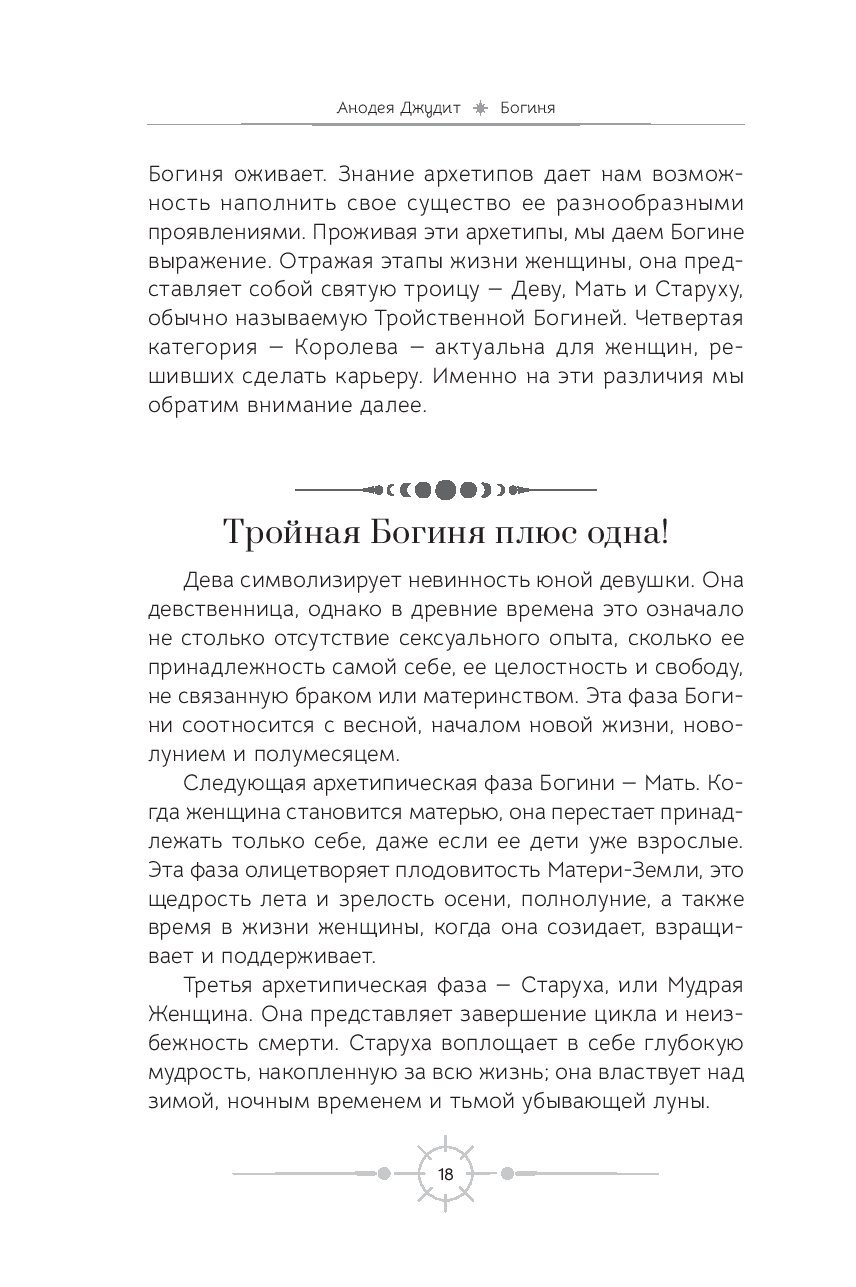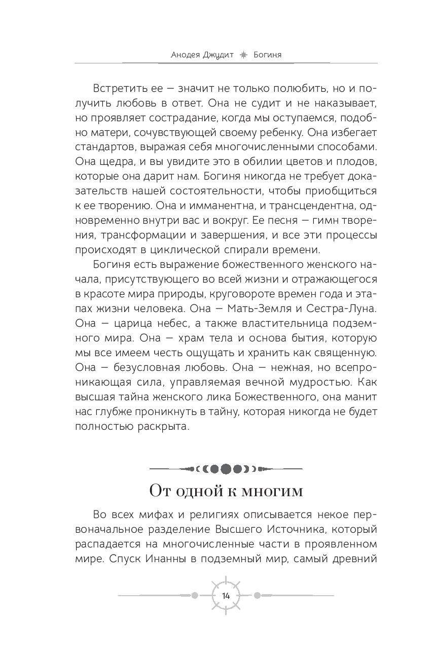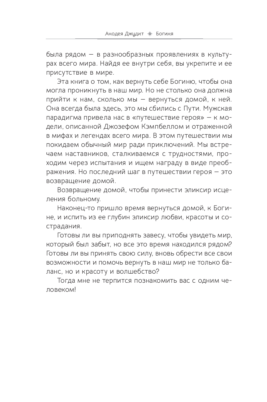 Каким образом можно выдохнуть, замедлиться и снова ощутить эмоциональный баланс? В этом вам поможет книга Анодеи Джудит, благодаря которой вы поймете, что вы – божественны и прекрасны сами по себе. Вы прочитаете истории женщин, которые пережили встречу с богинями. Эти рассказы вдохновят вас на исследование ваших идеалов, а не стандартов, которые встречаются в социальных сетях.