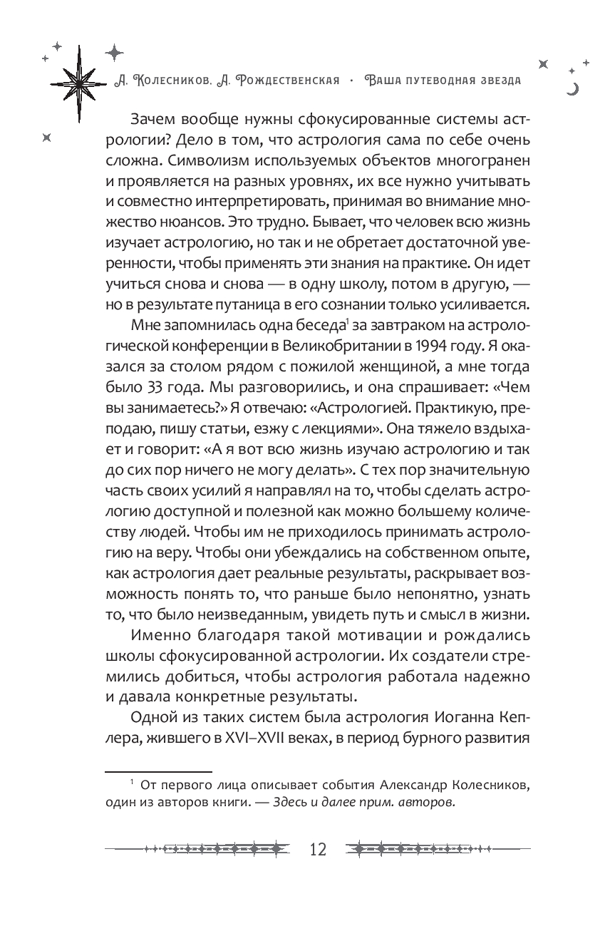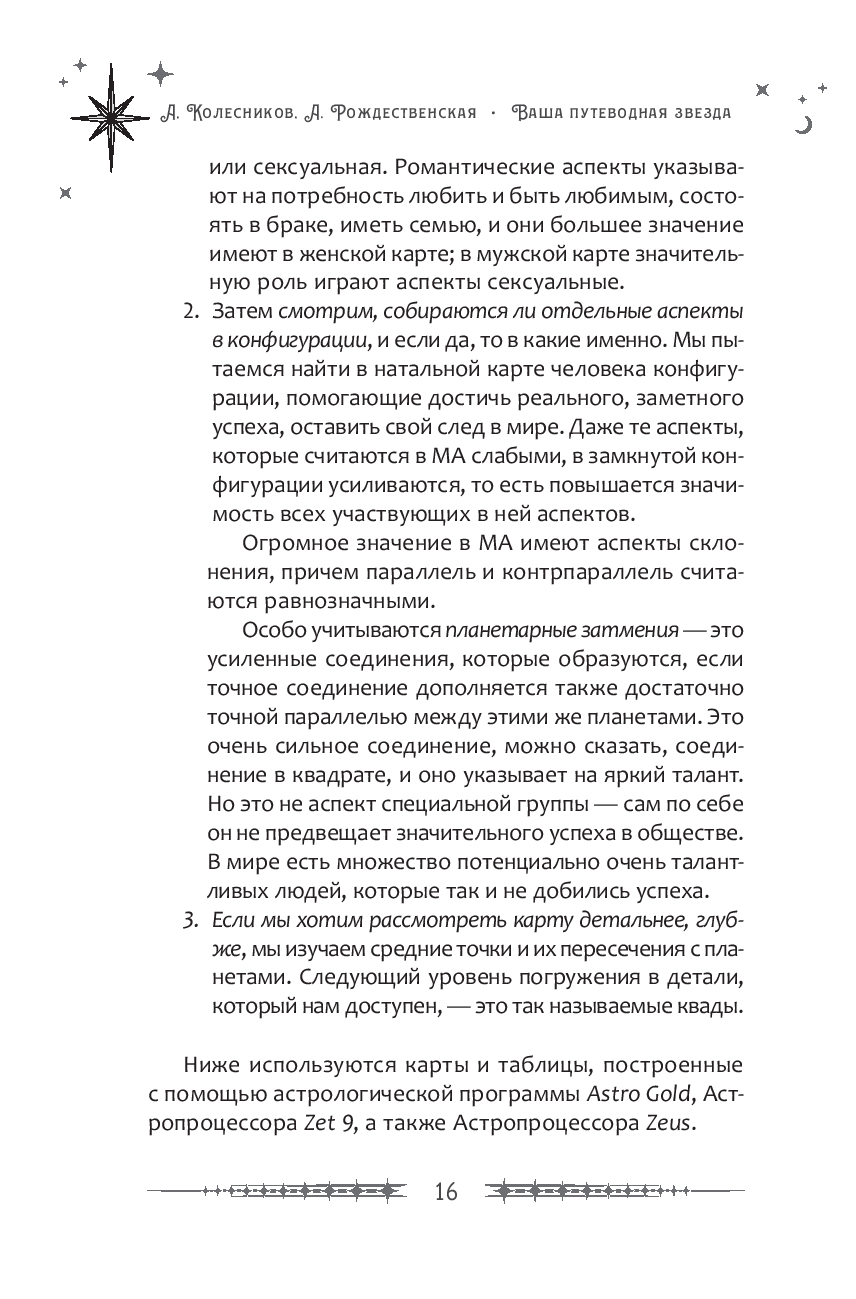 В своей новой книге Александр Колесников и Алина Рождественская рассказывают об астрологии успеха – направлении в науке о звездах, которое позволяет рассчитать периоды особенного счастья и везения. В профессиональной литературе они называются "Ворота Золушки". Этот красивый образ точно описывает, как может поменяться жизнь, если вы сумеете правильно подготовиться к времени удачи. Для этого нужно будет построить свою натальную карту и посмотреть, есть ли аспекты между определенными планетами. Такой анализ позволит максимально полно реализовать свой потенциал, а также раскрыть все свои таланты.