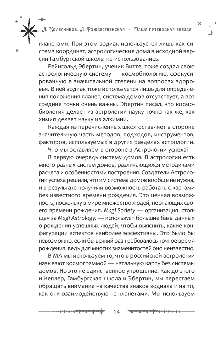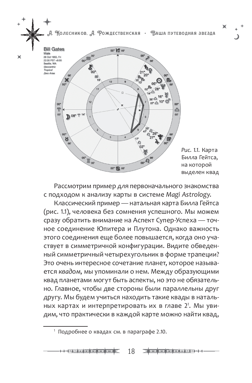В книге представлено большое количество иллюстраций и разборов натальных карт знаменитостей: актеров, спортсменов, изобретателей и т.д. Все эти материалы будут замечательным подспорьем в работе профессиональных астрологов, а также тех, кто только начинает изучение науки о звездах.