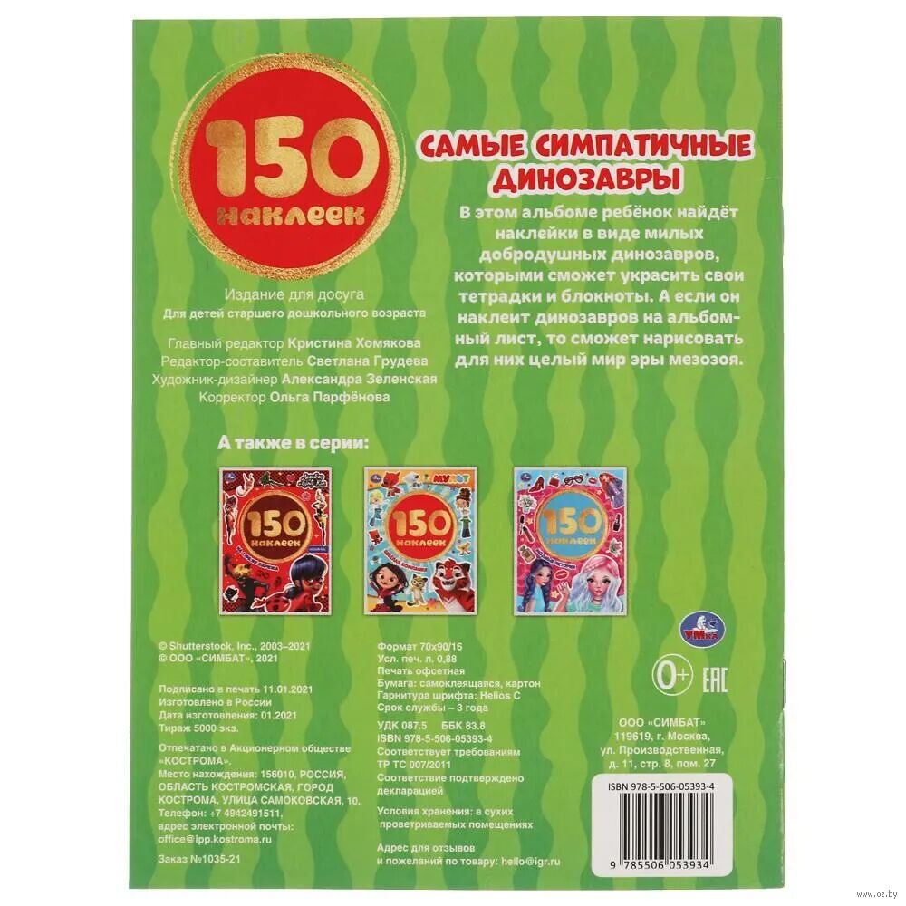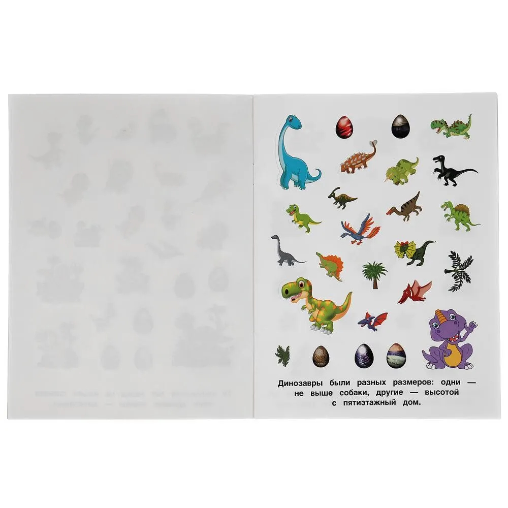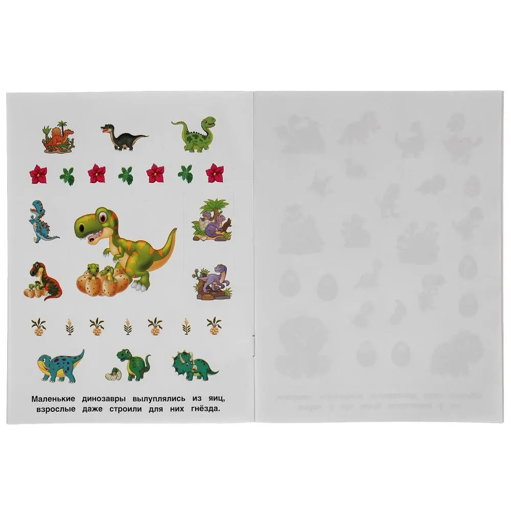 Ребенок с удовольствием будет приклеивать яркие стикеры с изображением очаровательных динозавров на альбомы и тетради, создавая свои собственные увлекательные истории. Благодаря компактному формату альбом удобно брать с собой в дорогу.
