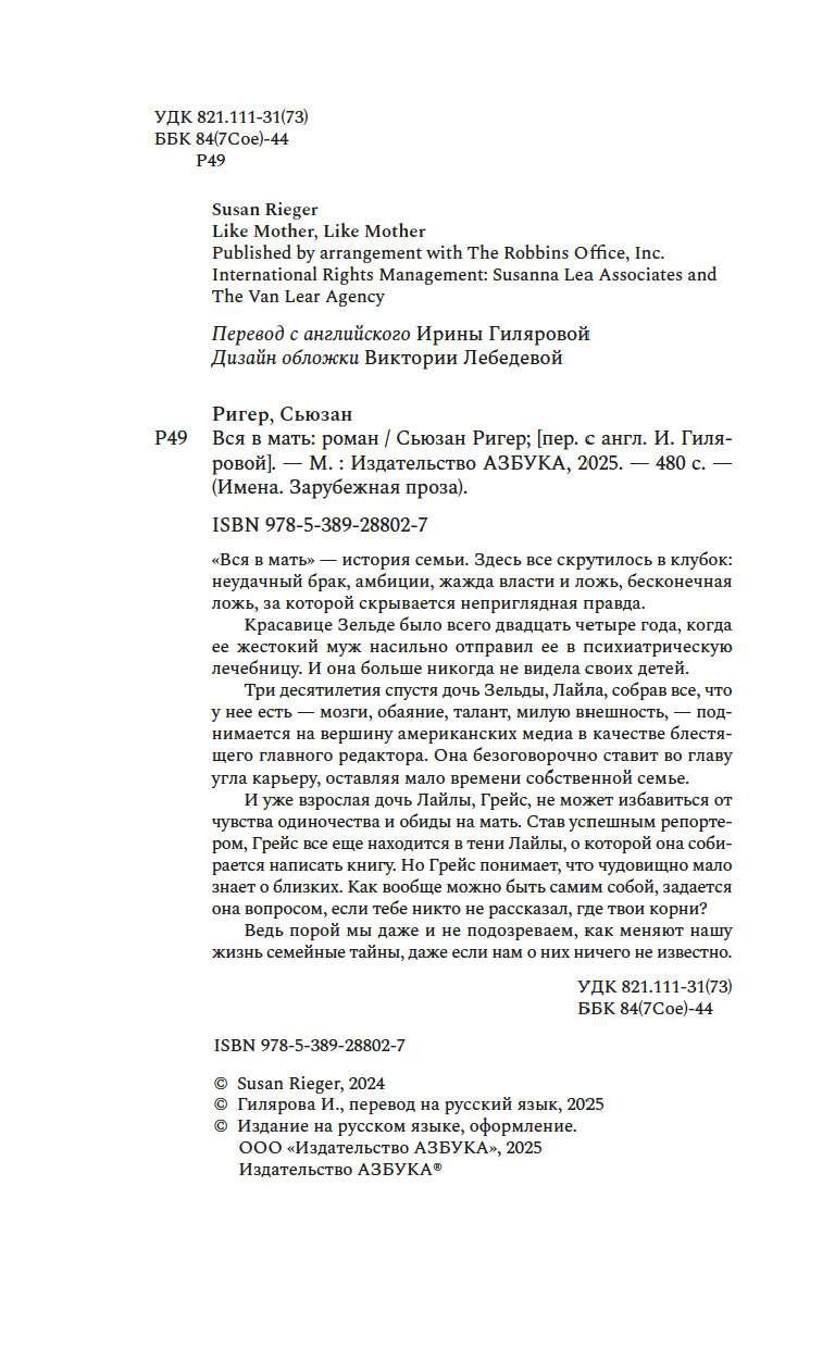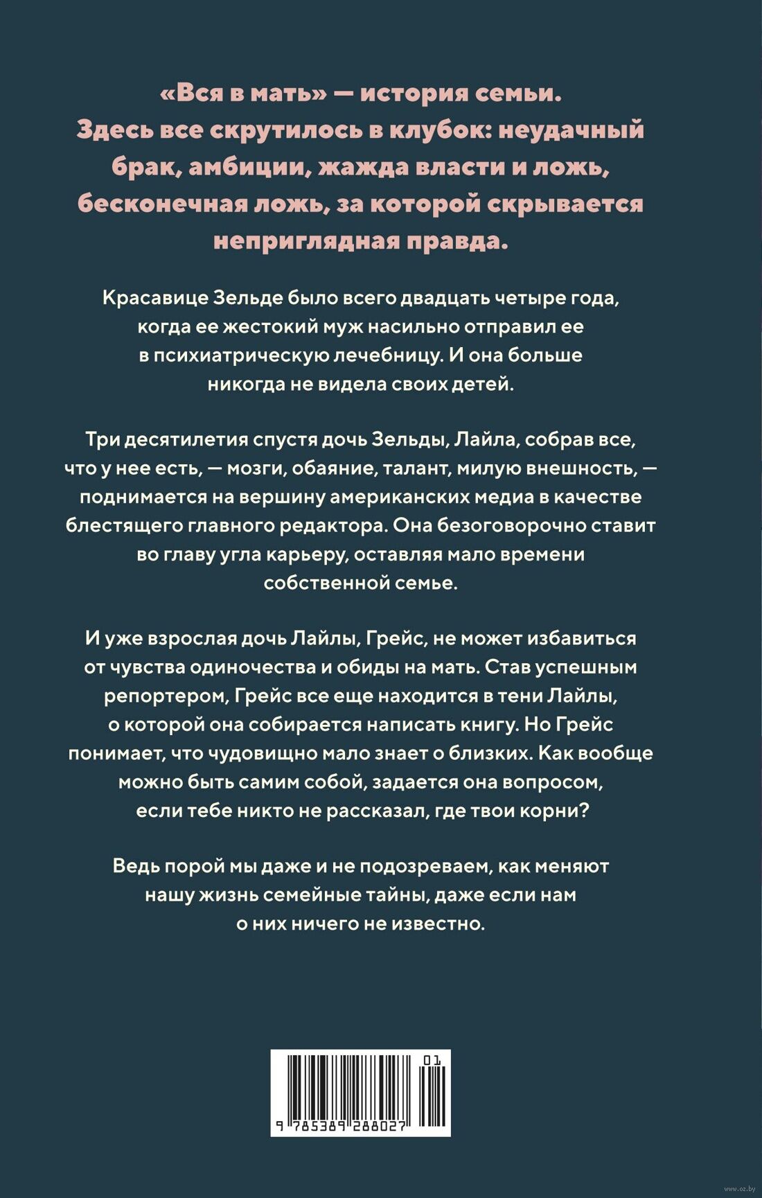 "Вся в мать" – история семьи. Здесь все скрутилось в клубок: неудачный брак, амбиции, жажда власти и ложь, бесконечная ложь, за которой скрывается неприглядная правда.