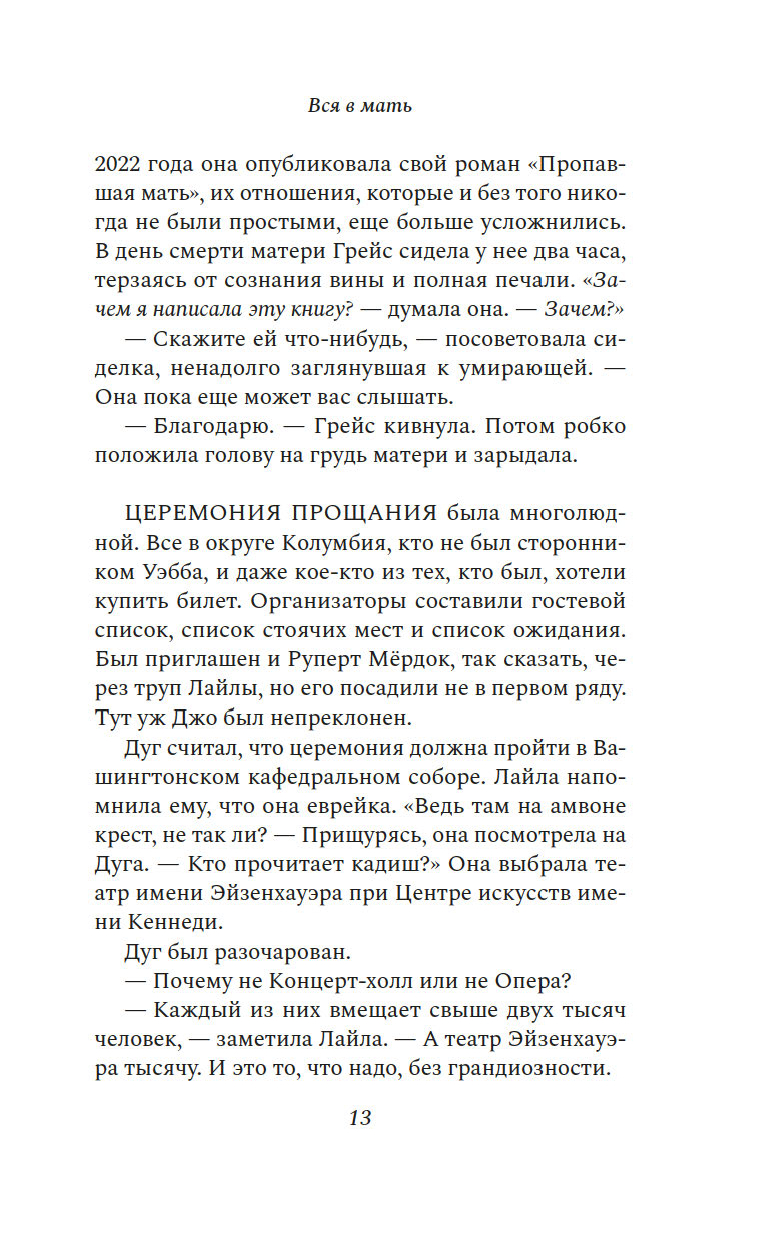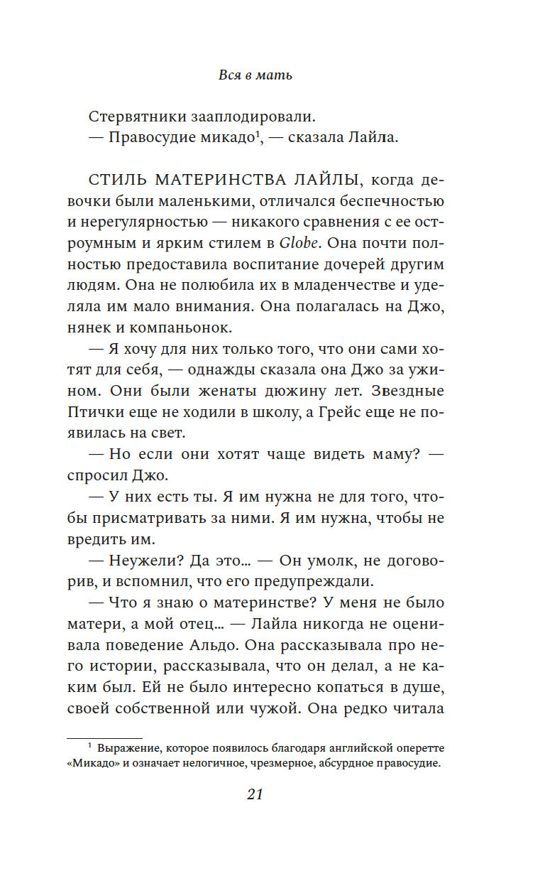 И уже взрослая дочь Лайлы, Грейс, не может избавиться от чувства одиночества и обиды на мать. Став успешным репортером, Грейс все еще находится в тени Лайлы, о которой она собирается написать книгу. Но Грейс понимает, что чудовищно мало знает о близких. Как вообще можно быть самим собой, задается она вопросом, если тебе никто не рассказал, где твои корни?