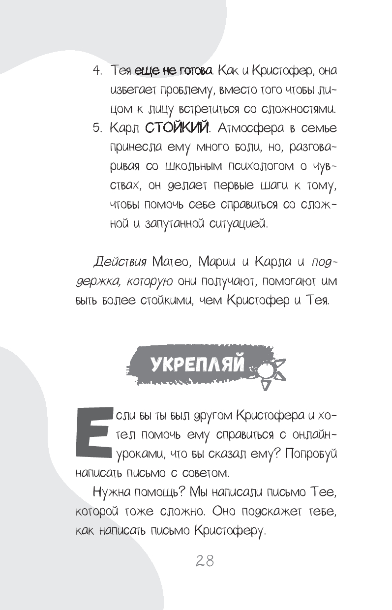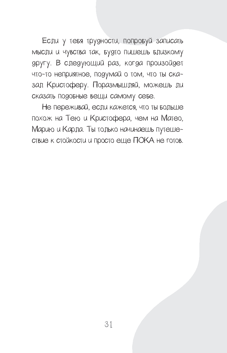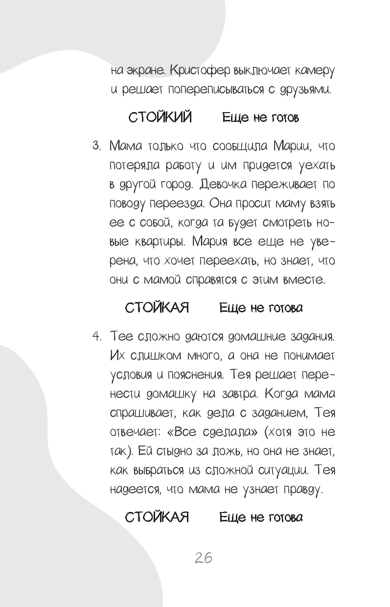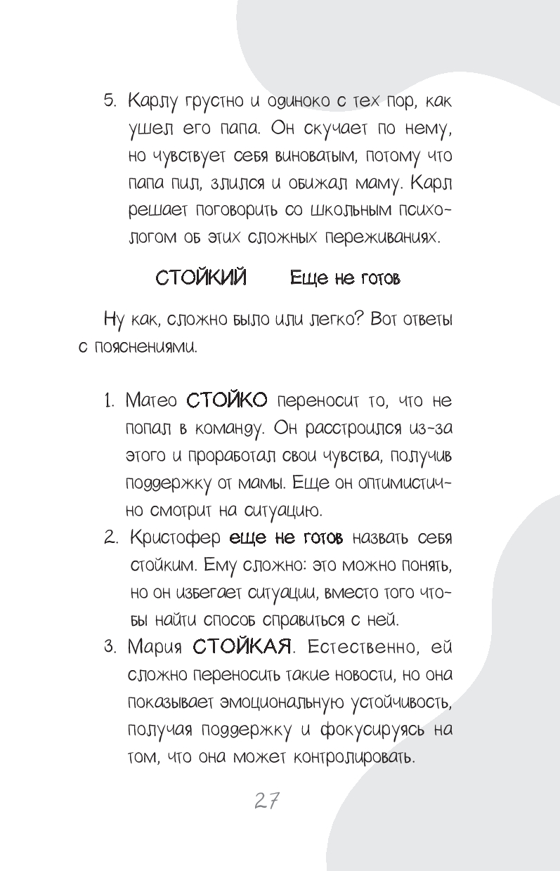 В ней описаны разные жизненные ситуации, в увлекательной обучающей форме даны советы о том, как вести себя перед лицом трудностей. Проходите несложные задания с ребенком, ненавязчиво помогайте, если у него будут возникать проблемы, и тогда малыш обязательно разберется в том, как быть устойчивым в нашем неспокойном мире.