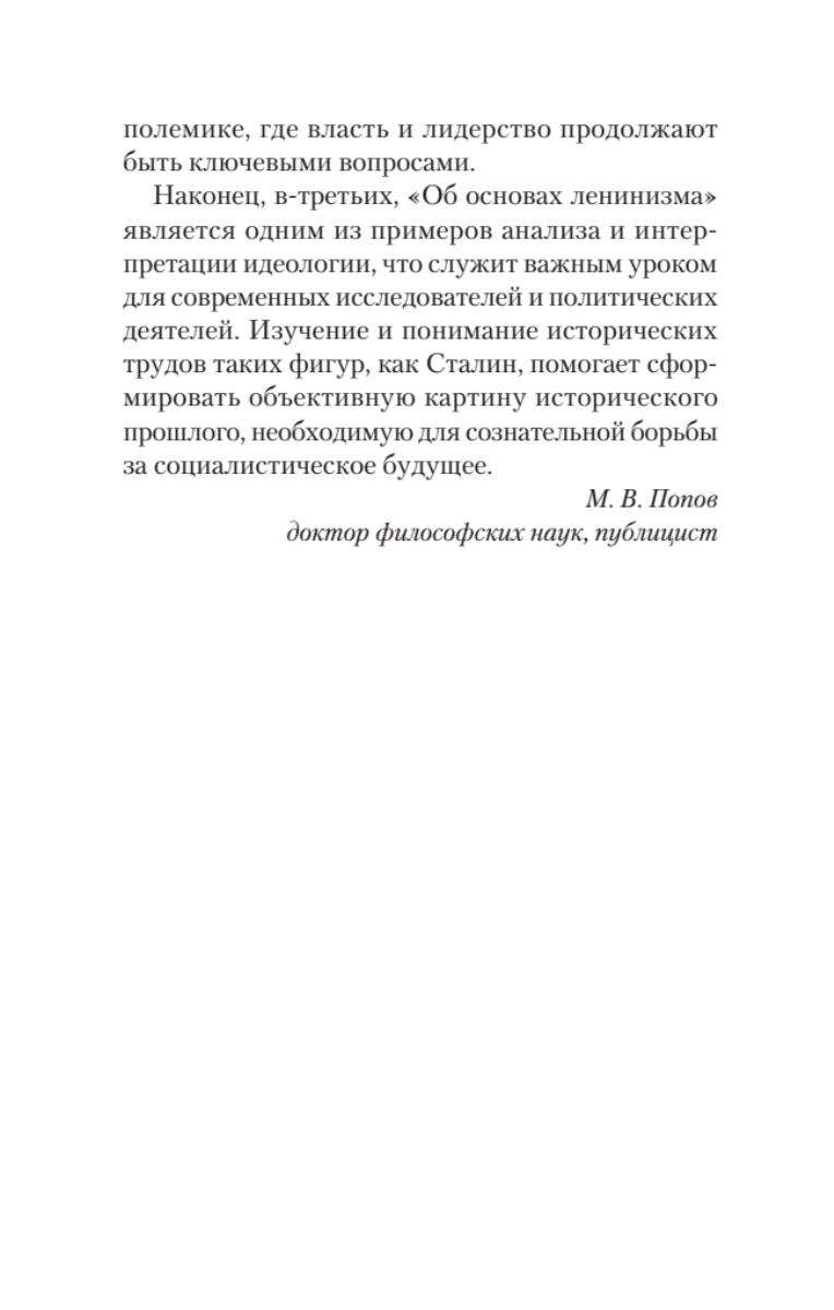В этой книге мы рассмотрим две работы Сталина: "Анархизм или социализм?" и сборник лекций "Об основах ленинизма". Несмотря на то что трудам генералиссимуса по политической философии исполнилось 100 лет, работы остаются актуальными и помогают разобраться в тонкостях политических режимов.