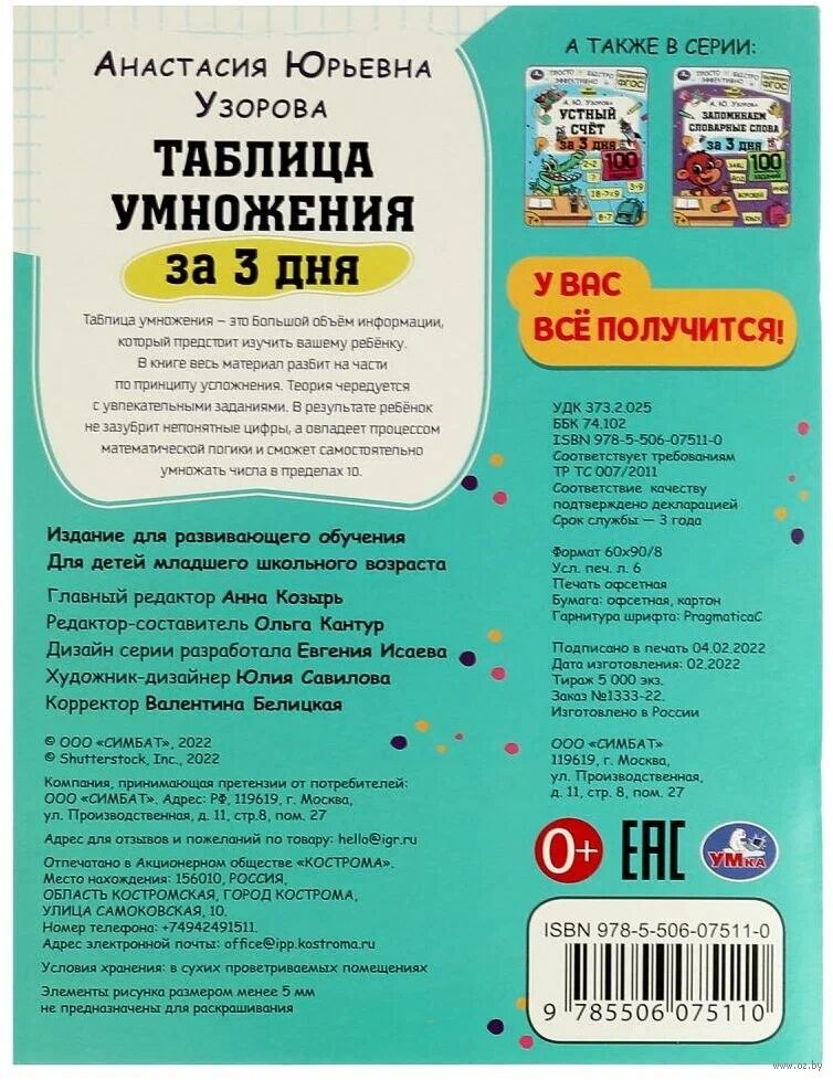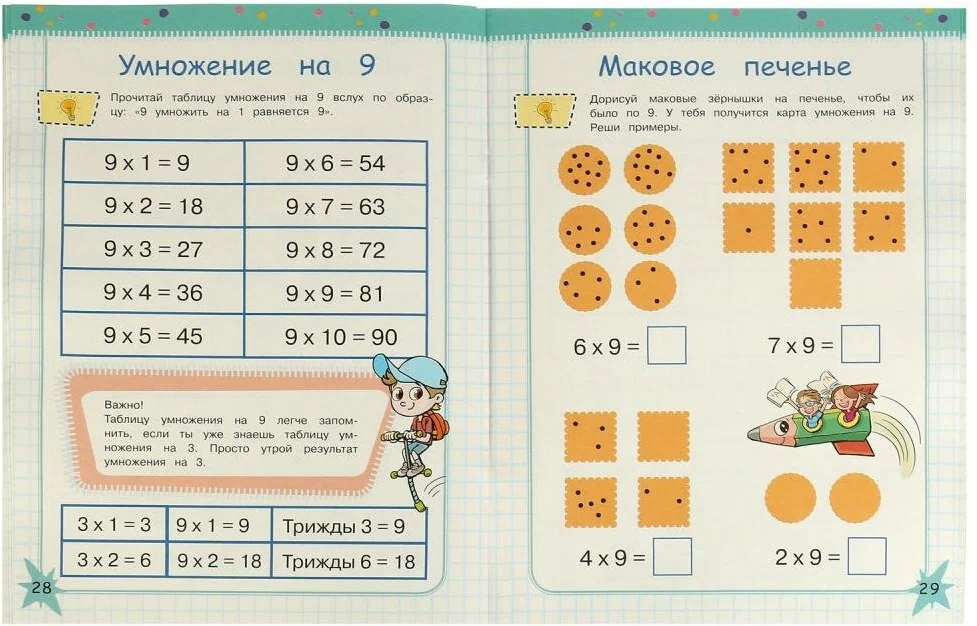 Таблица умножения – это большой объём информации, который предстоит изучить школьнику. В этой книге весь материал разбит на части по принципу усложнения. Теория чередуется с увлекательными заданиями. В результате занятий с данной брошюрой ребёнок не просто зазубрит непонятные цифры, а освоит процесс математической логики и сможет самостоятельно умножать любые числа.