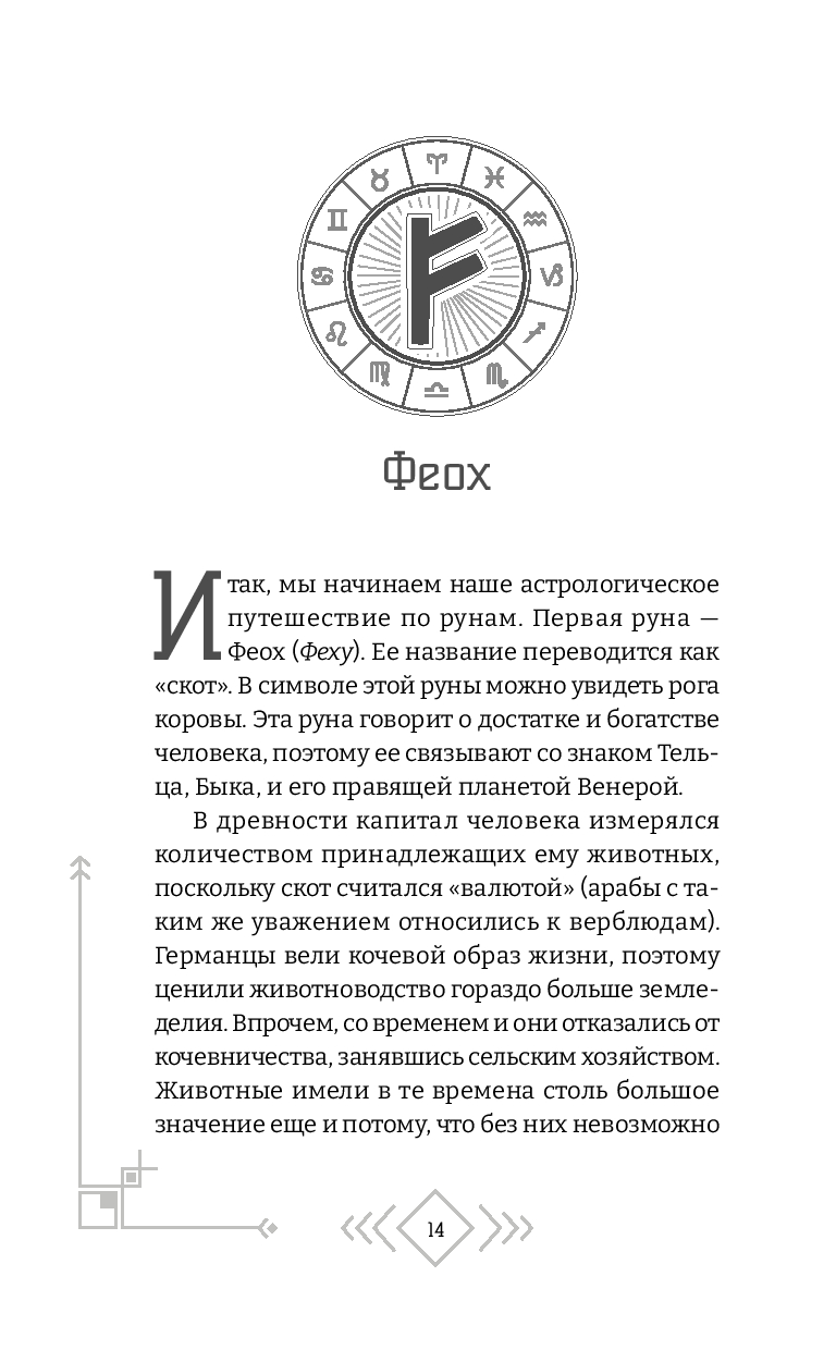 Во-первых, в ней изложено все необходимое, чтобы вы могли начать читать руны и получать от них четкие ответы на конкретные вопросы, свои и чужие. Во-вторых, эта книга расширит ваш опыт работы с рунами, представив их в контексте западной астрологии, благодаря чему вам откроется еще более глубокое понимание их посланий.