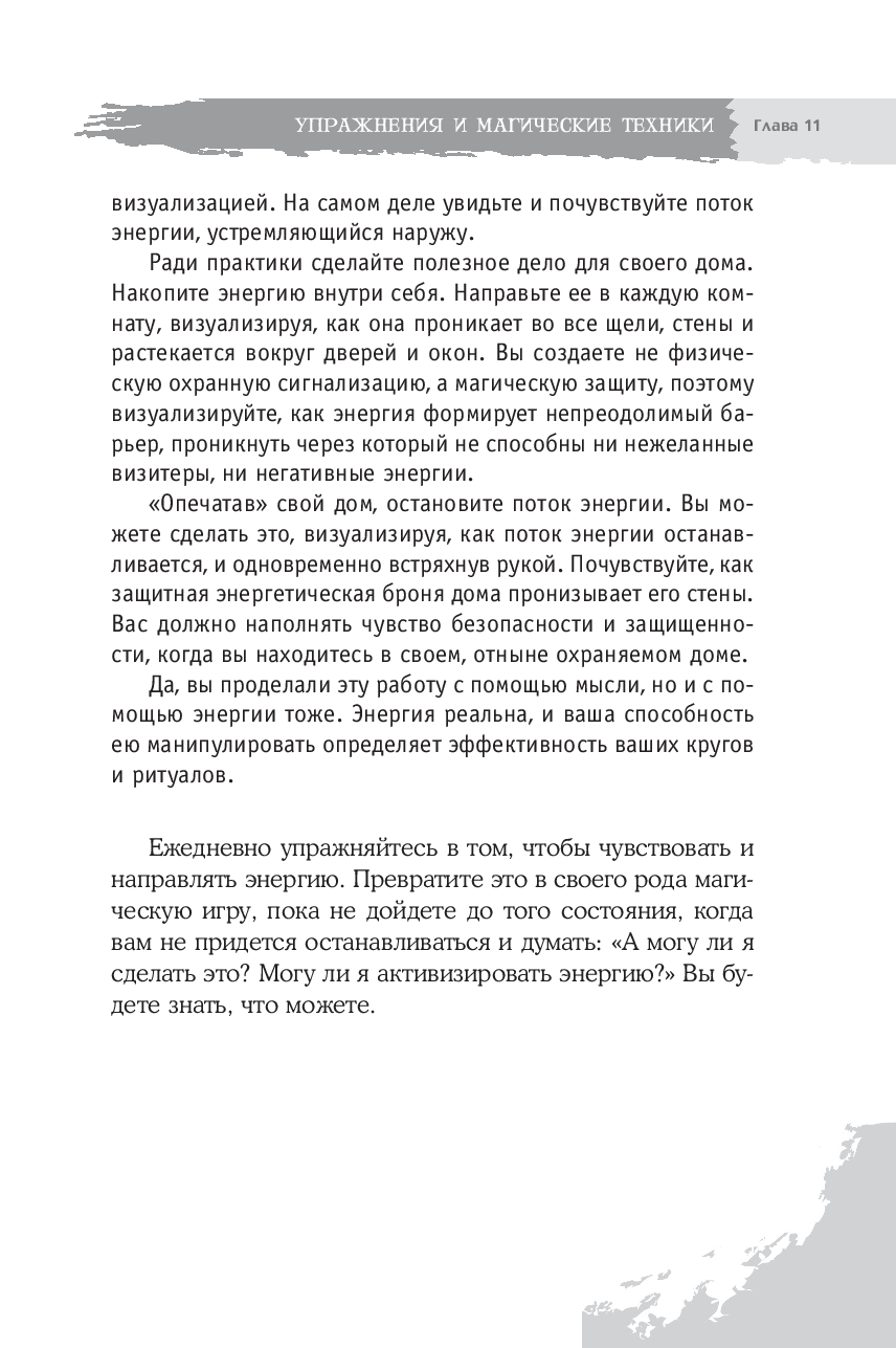 В отдельный раздел включена авторская Книга Теней. В ней представлены схемы ритуалов, тексты заклинаний, а также различные магические сведения: свойства трав и эфирных масел, рецепты эликсиров и фимиамов, методы изготовления рун и их значения и др. Вы сможете использовать наработки автора в своей практике, а затем на их основе создать собственную Книгу Теней.