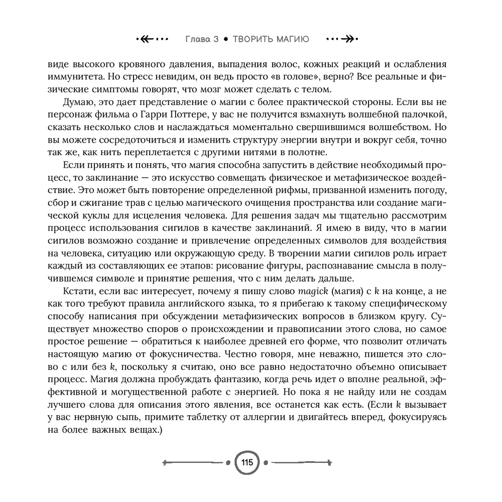 Двигаясь от простого к сложному, превращаясь из новичка в специалиста, вы научитесь создавать собственные сигилы. Для этого требуется лишь дать волю воображению и умение рисовать простые символы. Помните, как в школе вы гадали, пригодится ли вам когда-нибудь геометрия в реальной жизни? Похоже, сейчас это время пришло, но теперь никто не будет ставить вам оценок!