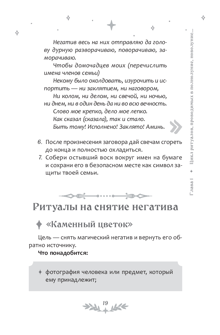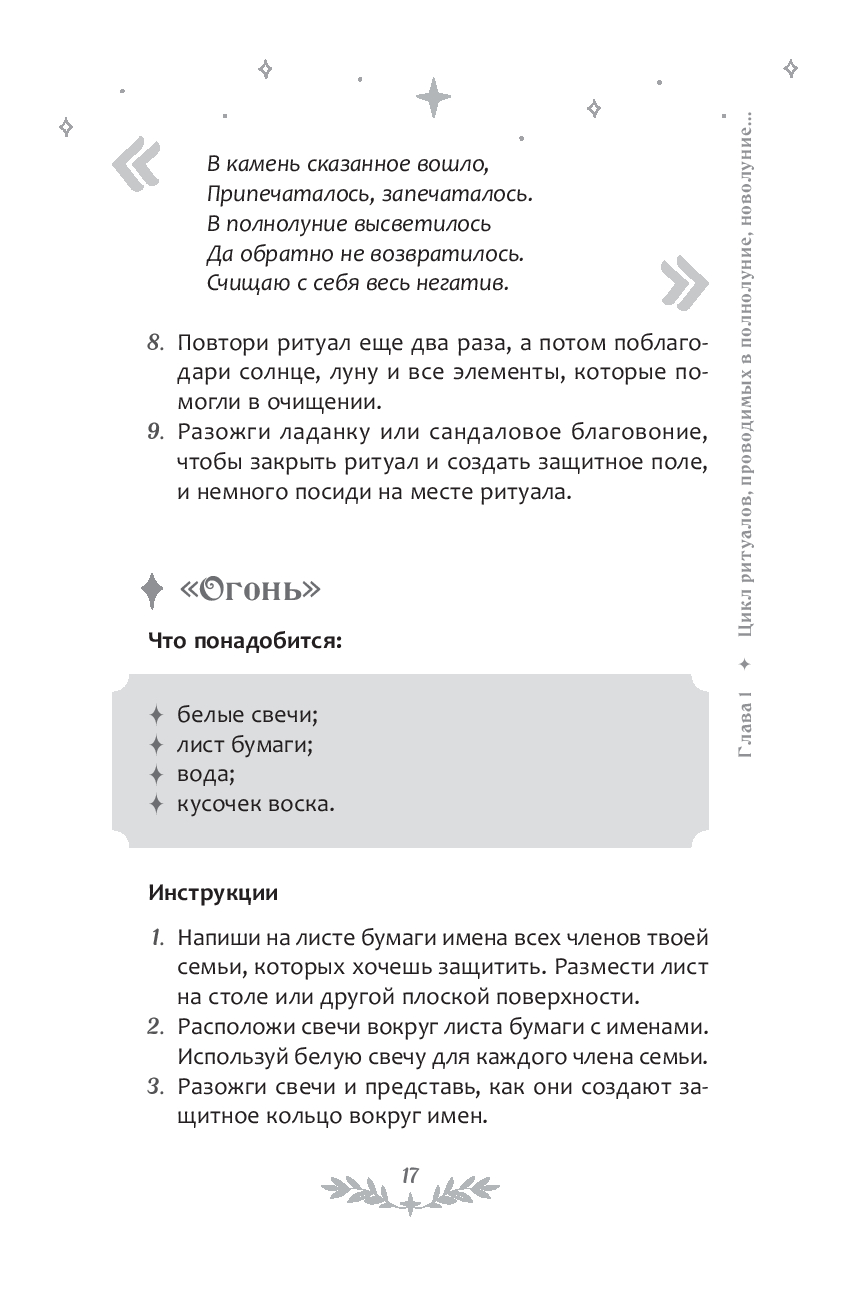 Книга также призвана развеять стереотипы о том, что магию могут творить только избранные. Любой желающий, прочитав ее, сможет прикоснуться к колдовскому ремеслу и провести описанные в ней ритуалы.