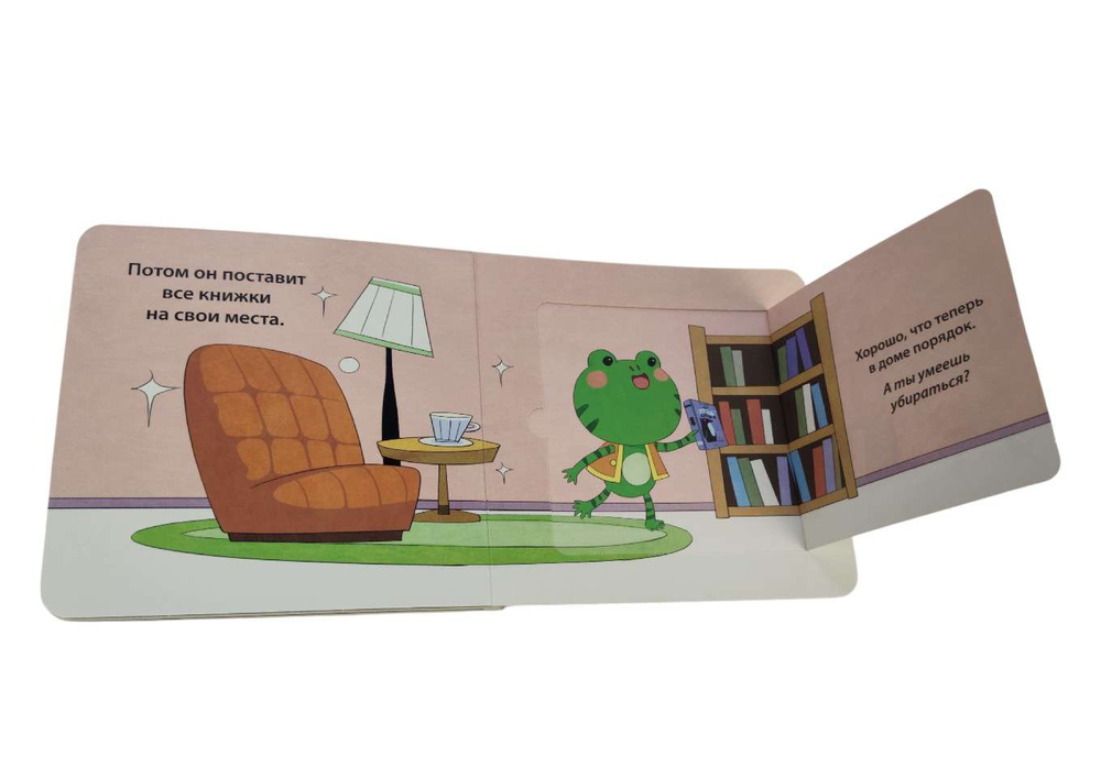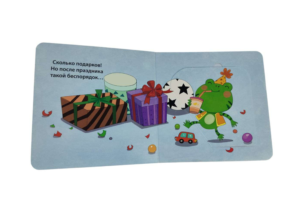 Лягушонок весело отметил с друзьями свой день рождения. Но после праздника все вещи оказались разбросаны по комнате. Вместе с Лягушонком малыши узнают, где должны лежать игрушки, куда выбрасывать мусор и многое другое!