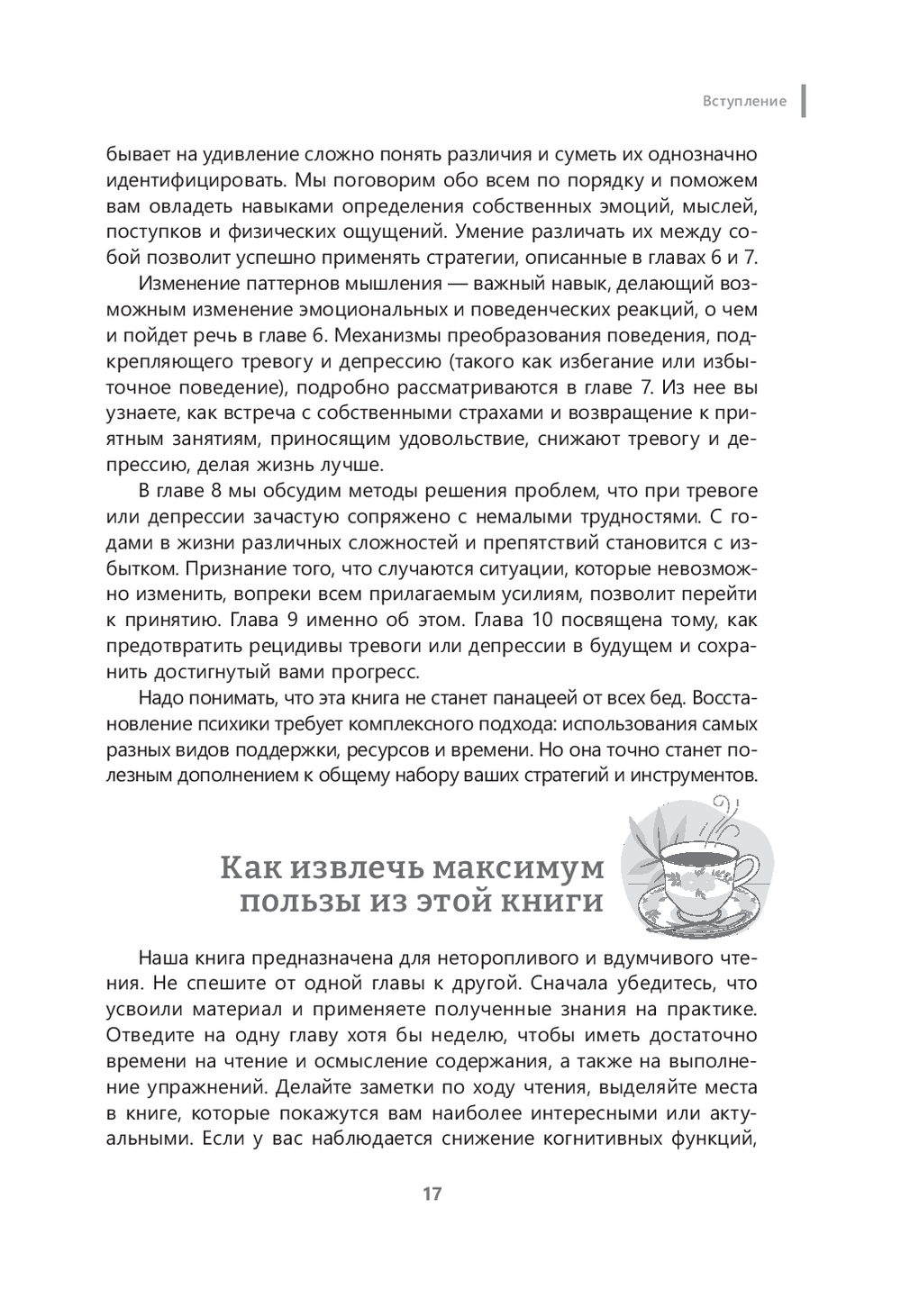 Авторы – психологи с большим стажем – научат вас искусству гибкого мышления и почувствовать себя более вовлеченным в жизнь. Вы узнаете стратегии управления тревогой, а также получите советы, которые позволят вам уменьшить симптомы депрессии и апатии в будущем. Вы узнаете, как с возрастом меняется мышление, и найдете множество стратегий, как справиться с этим и вести радостную и осознанную жизнь.