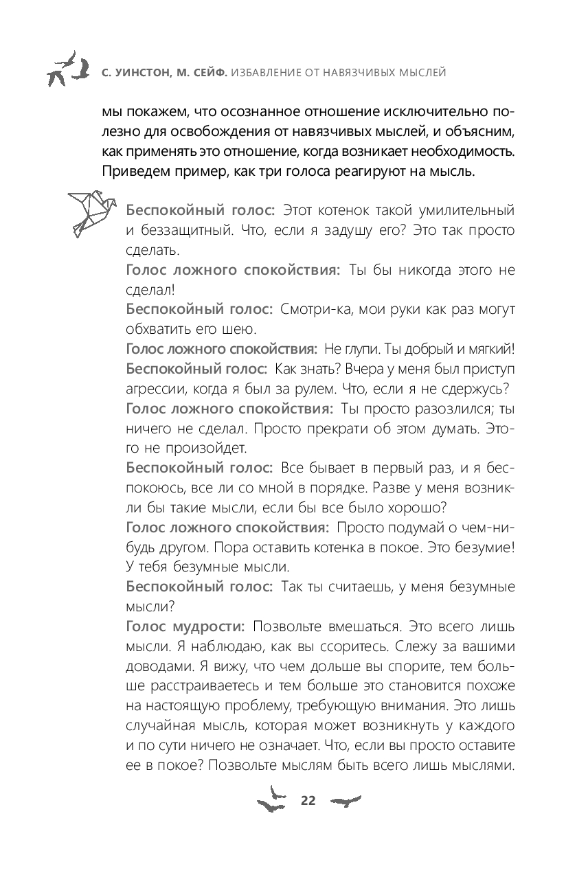 Вас хоть раз посещали пугающие, навязчивые или тревожные мысли? Гладить котенка и вдруг подумать: "Я могу легко размозжить ему голову". Утешать друга, пережившего фиаско в личной жизни, и втайне смаковать унизительные детали его рассказа. Ехать с семьей в автомобиле и в подробностях представлять, как вы теряете управление и выезжаете на встречную полосу. Стыдно, страшно, не хочется верить, что это все приходит вам в голову? Стремитесь поскорее их забыть?