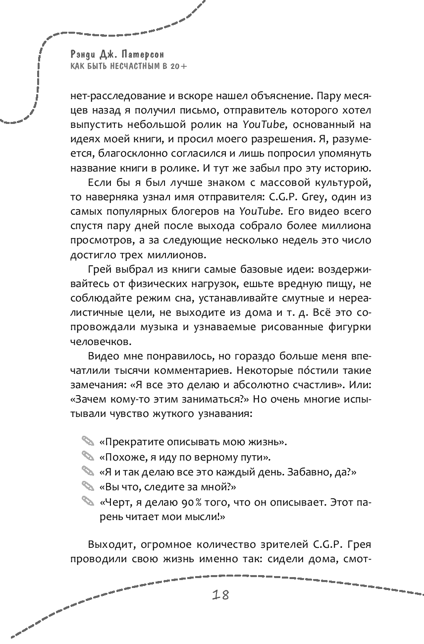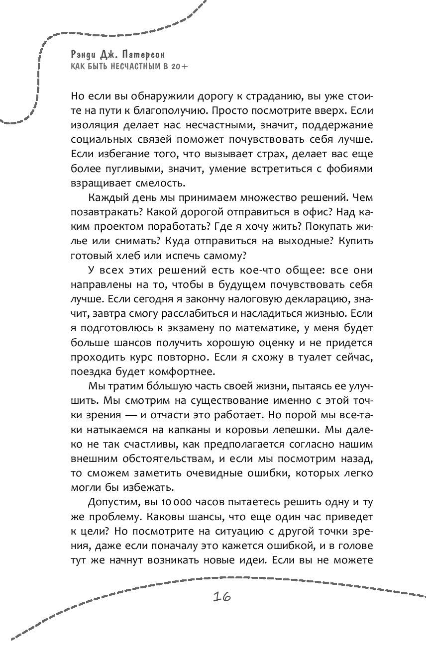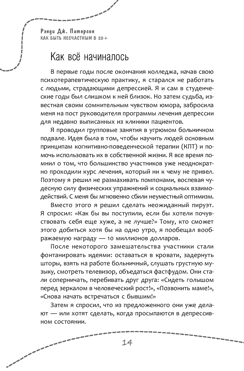 Рэнди Патерсон – практикующий психотерапевт, автор бестселлера «Как быть несчастным» и обладатель фирменного чувства юмора – покажет самые распространенные ловушки и подводные камни, подстерегающие каждого человека в возрасте от 18 до 30 лет. В этой книге вы не найдете банальностей, обещаний счастья и сказочного благополучия. Вместо этого вы найдете 40 надежных способов максимально испортить себе жизнь. Не упустите этот шанс.