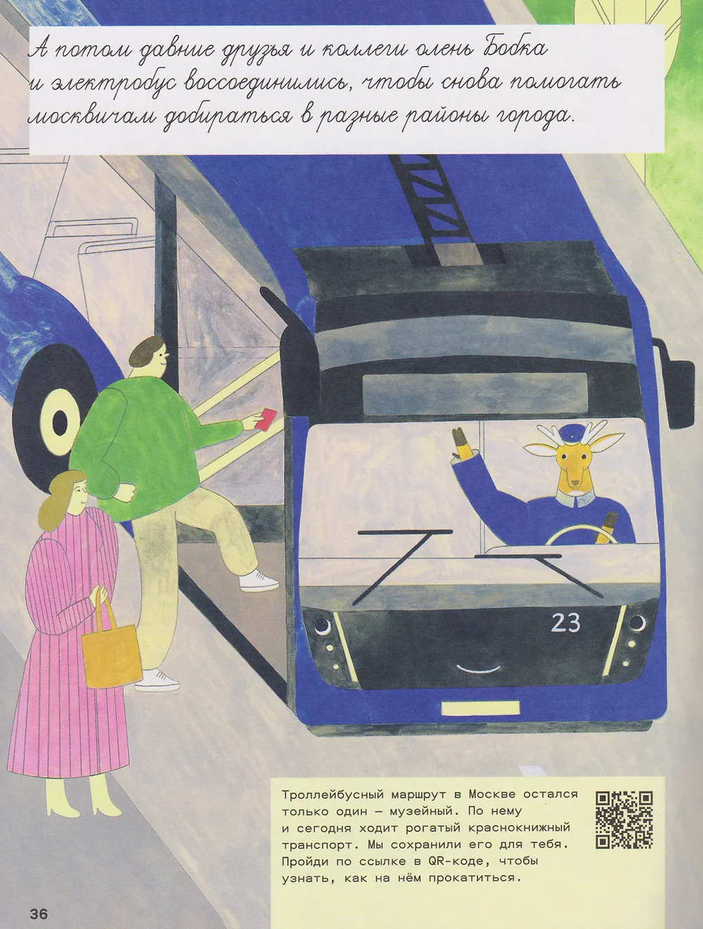 Куда пропали московские троллейбусы? Они просто сбросили рога и превратились в электробусы! А произошло это благодаря одному весёлому синему троллейбусу, который мечтал увидеть весь мир, а не ездить каждый день по одинаковым маршрутам. Как и его лучший друг олень Бобка, троллейбус сбросил красивые, но большие и неудобные рога – ведь мечты и дружба стоят того, чтобы меняться.