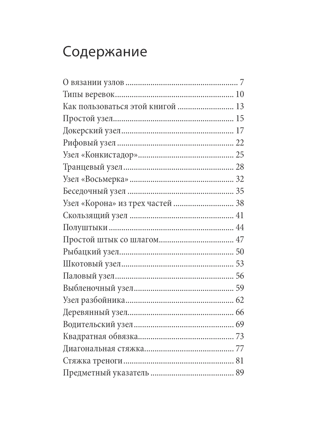 Практичный и наглядный справочник по узлам, которые пригодятся дома, на рыбалке и в путешествии! Автор собрал 21 ключевой узел, пояснил их назначение, особенности и проиллюстрировал каждый шаг завязывания. Вы узнаете все о видах веревок, материалов и научитесь выбирать узлы правильно.