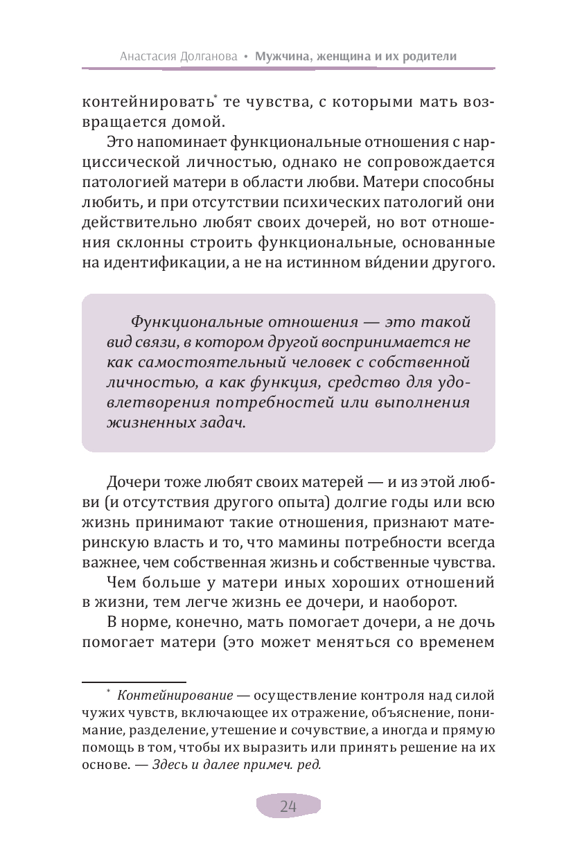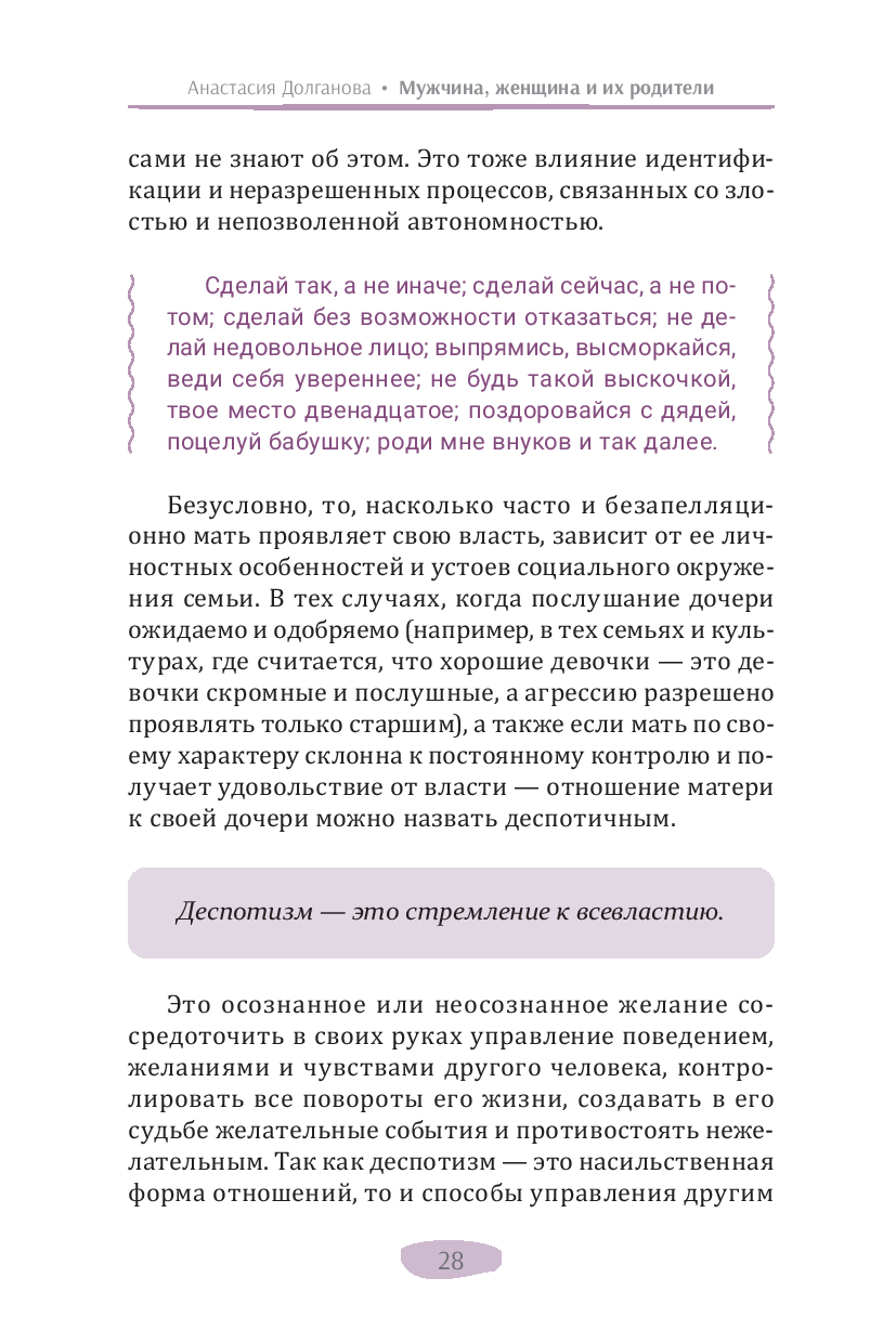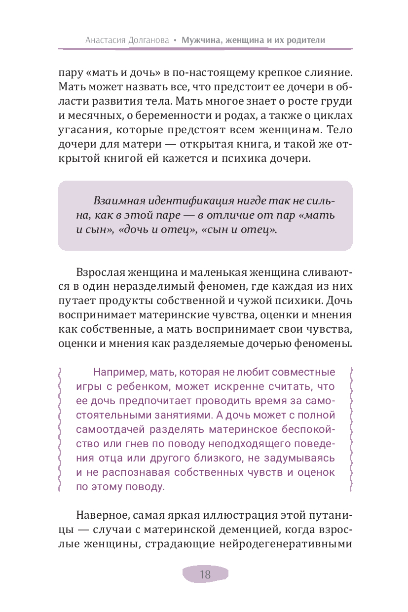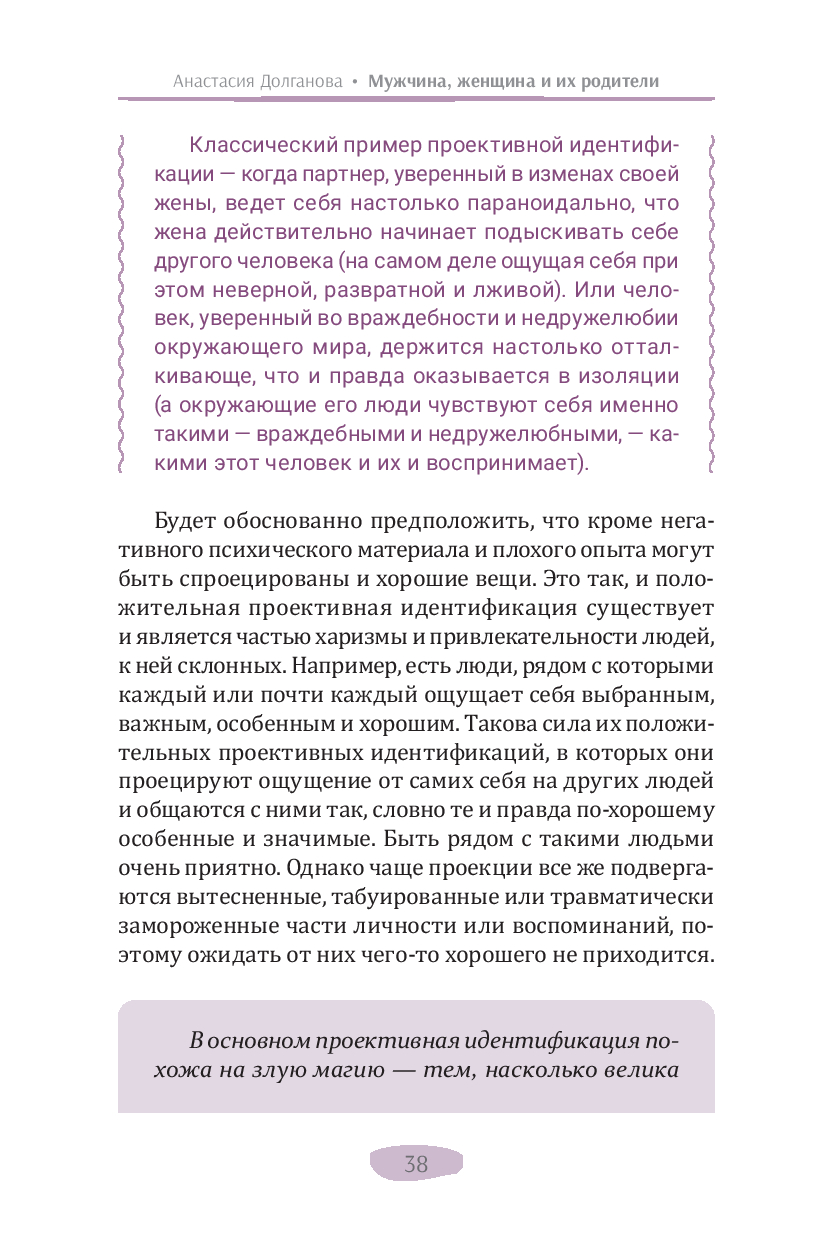 В своей новой книге автор бестселлеров по психологии (дипломированный психолог) Анастасия Долганова описывает влияние раннего детского опыта на уже взрослые взаимодействия. Она подробно объясняет, как выученные в детстве бессознательные реакции мешают нам быть гибкими и адаптивными, нагружают взрослые отношения прошлыми эмоциональными травмами, не дают двигаться вперед. Изучение, осознание и принятие этого опыта помогает выйти из замкнутого круга повторений, дает возможность личностного развития и обретения счастья в отношениях.