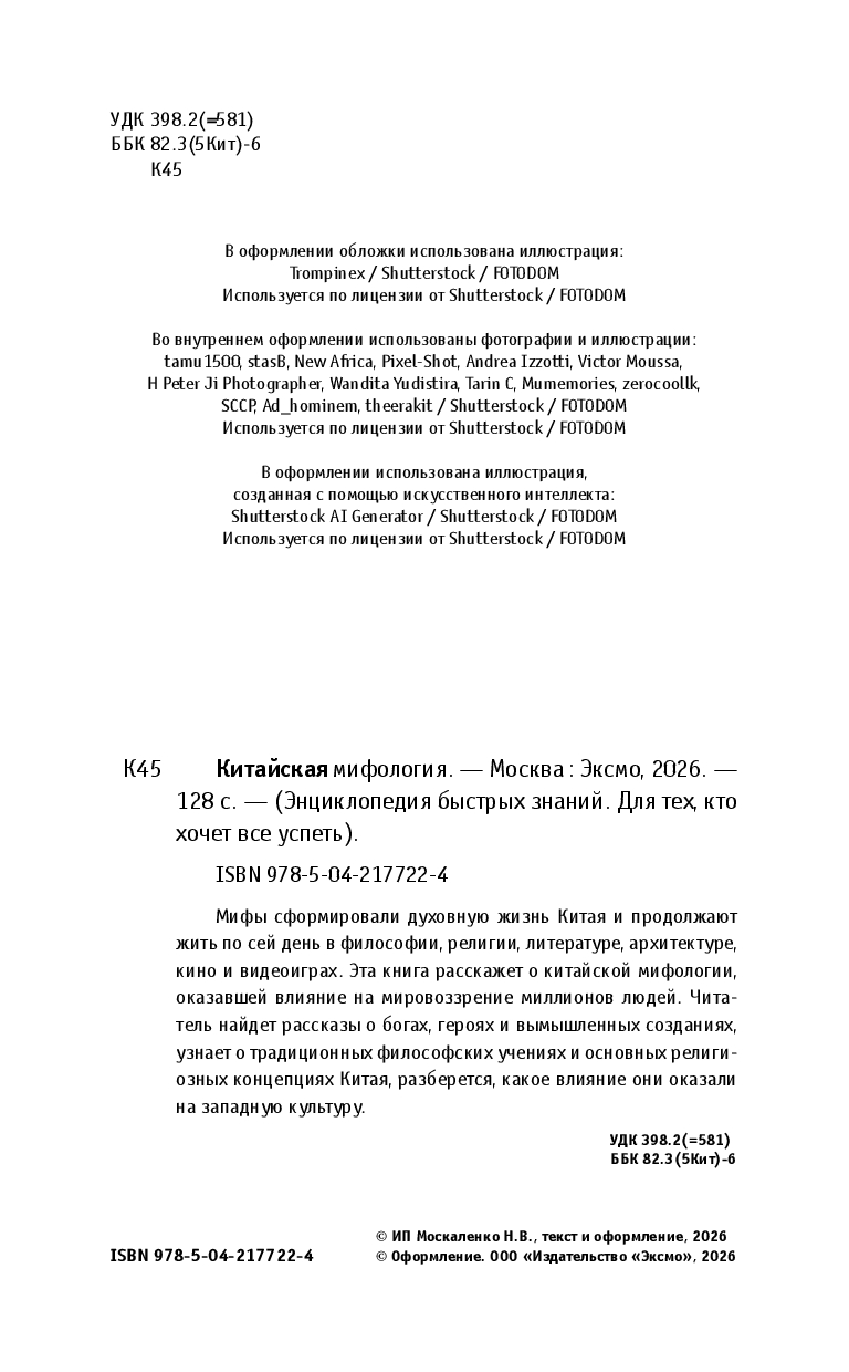 Мифы сформировали духовную жизнь Китая и продолжают жить по сей день в философии, религии, литературе, архитектуре, кино и видеоиграх. Эта книга расскажет о китайской мифологии, оказавшей влияние на мировоззрение миллионов людей. Читатель найдет рассказы о богах, героях и вымышленных созданиях, узнает о традиционных философских учениях и основных религиозных концепциях Китая, разберется, какое влияние они оказали на западную культуру.