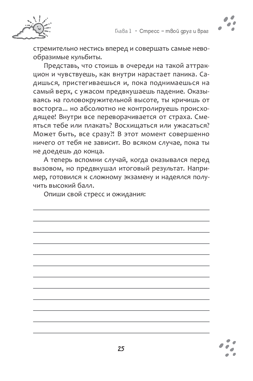 После выполнения упражнений из этой рабочей тетради, ты научишься справляться с негативными переживаниями, адекватно реагировать на стрессы, а также шаг за шагом идти к жизни своей мечты.