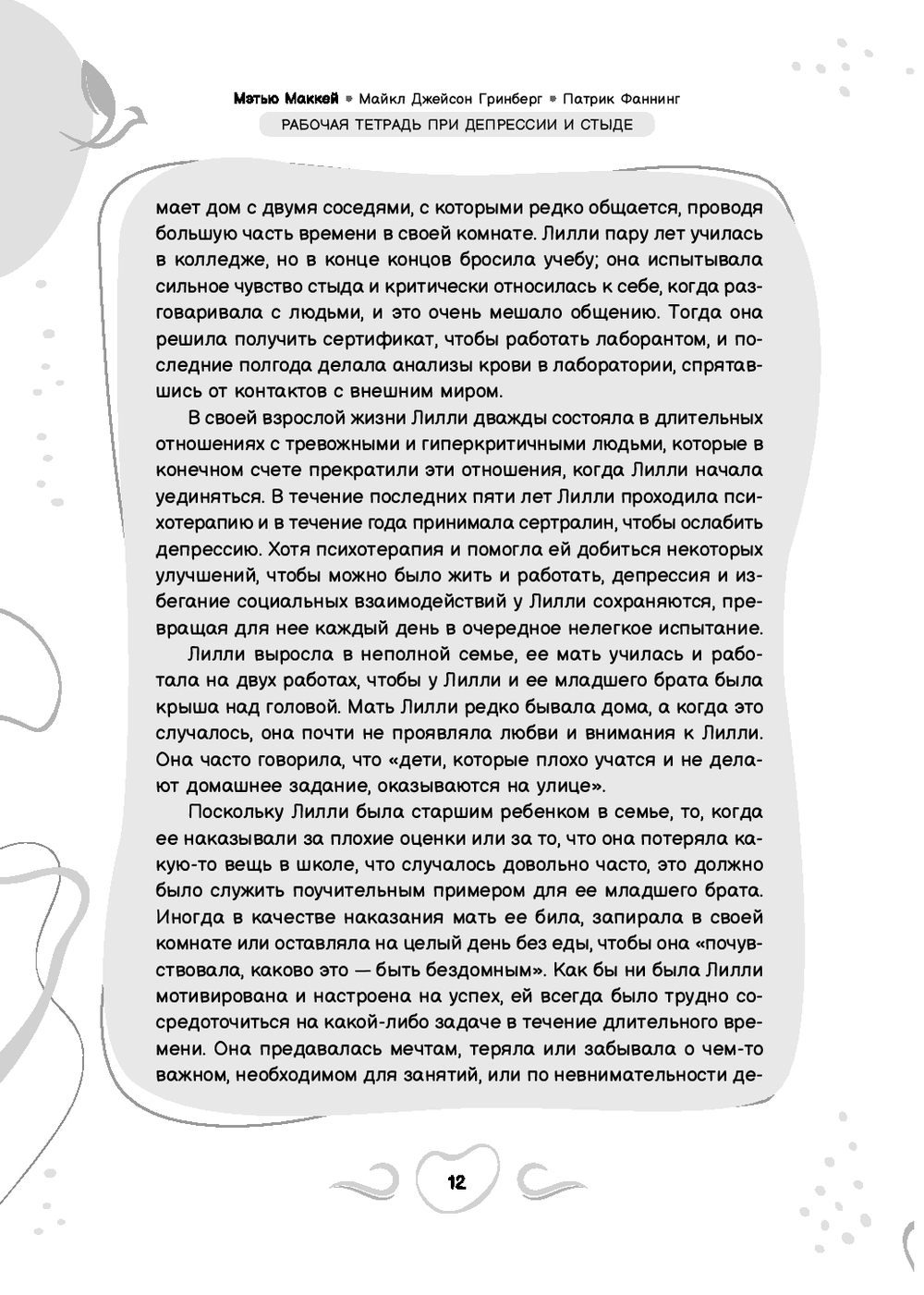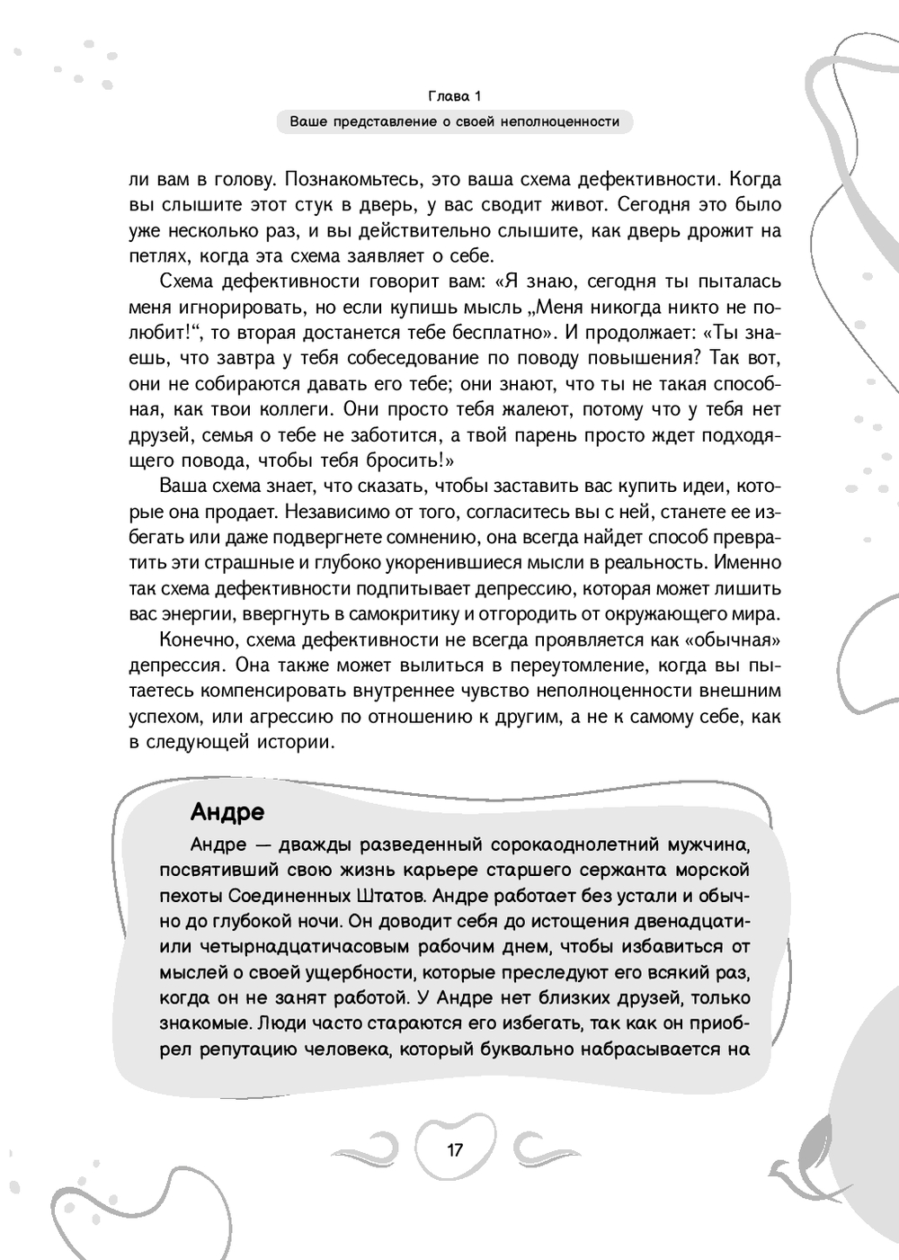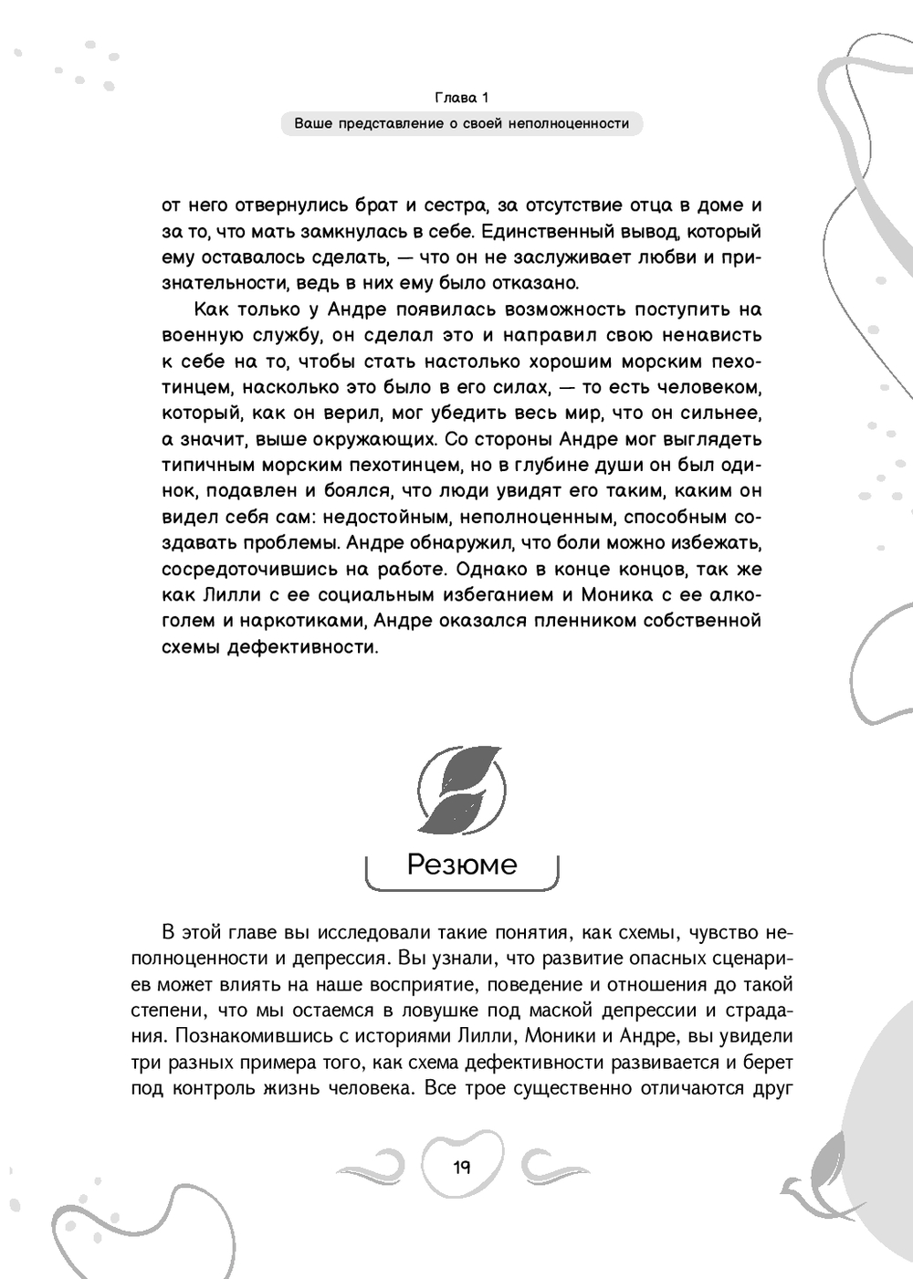 Эта рабочая тетрадь основана на методах терапии принятия и ответственности (ACT – Acceptance Commitment Therapy). Вы найдете в ней инструменты для выявления и преодоления чувства неполноценности, позволяющие построить жизнь, наполненную энергией и смыслом. Откроете для себя способы установления связи со своими ценностями, обнаружите лучшие поведенческие стратегии и научитесь принимать себя во всей своей удивительной сложности – с добротой и состраданием.