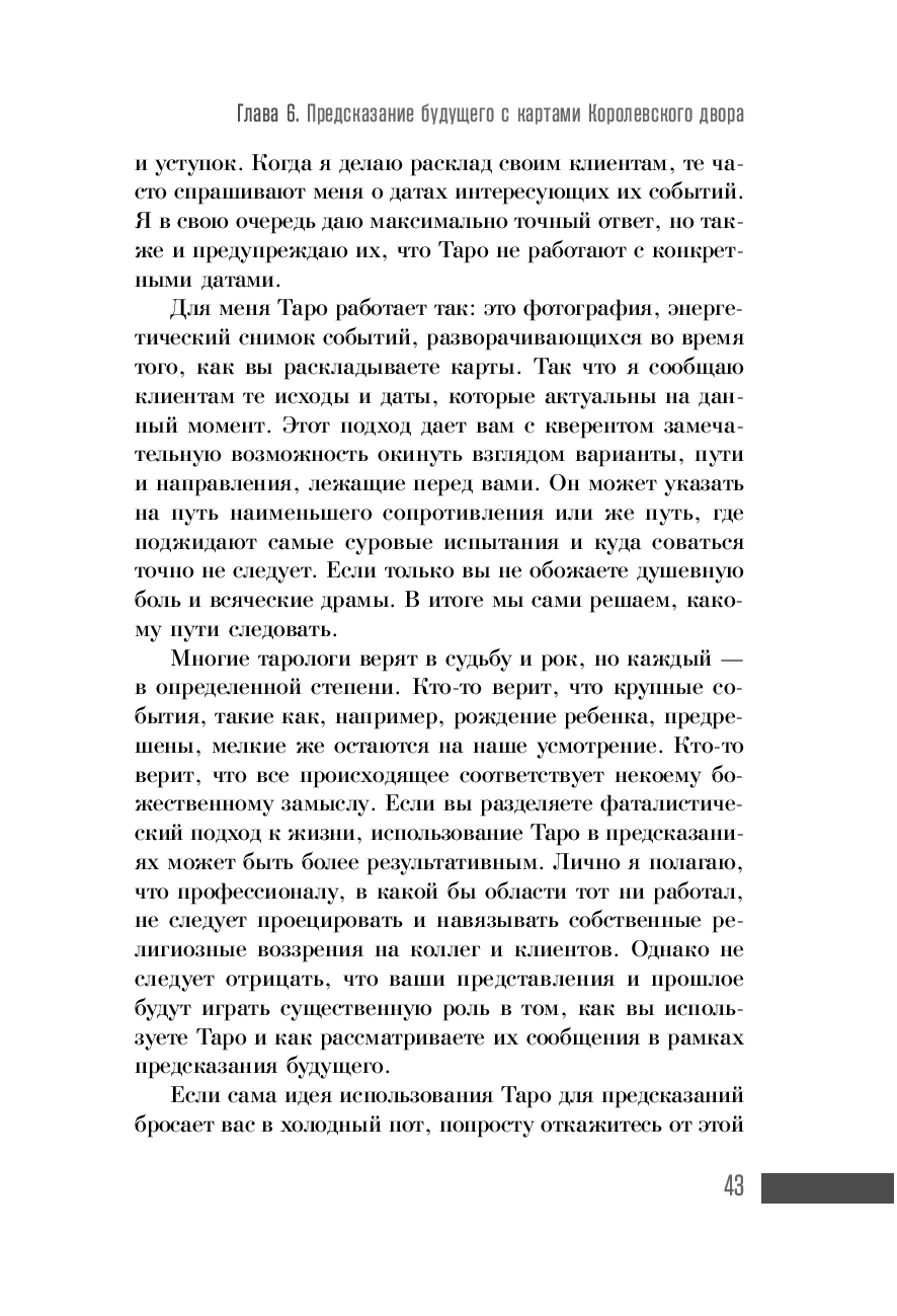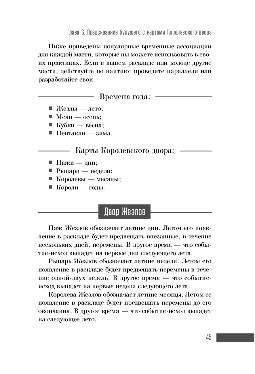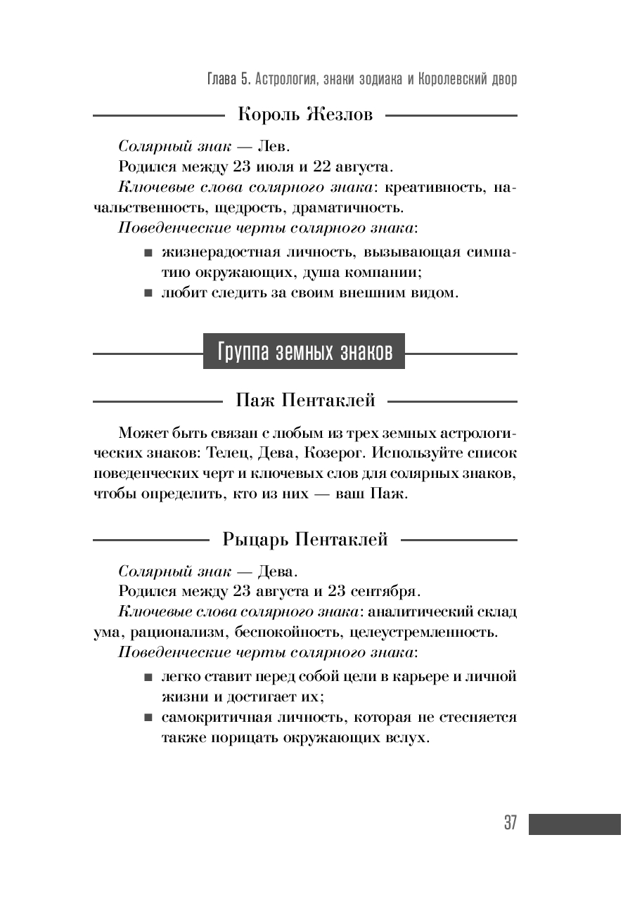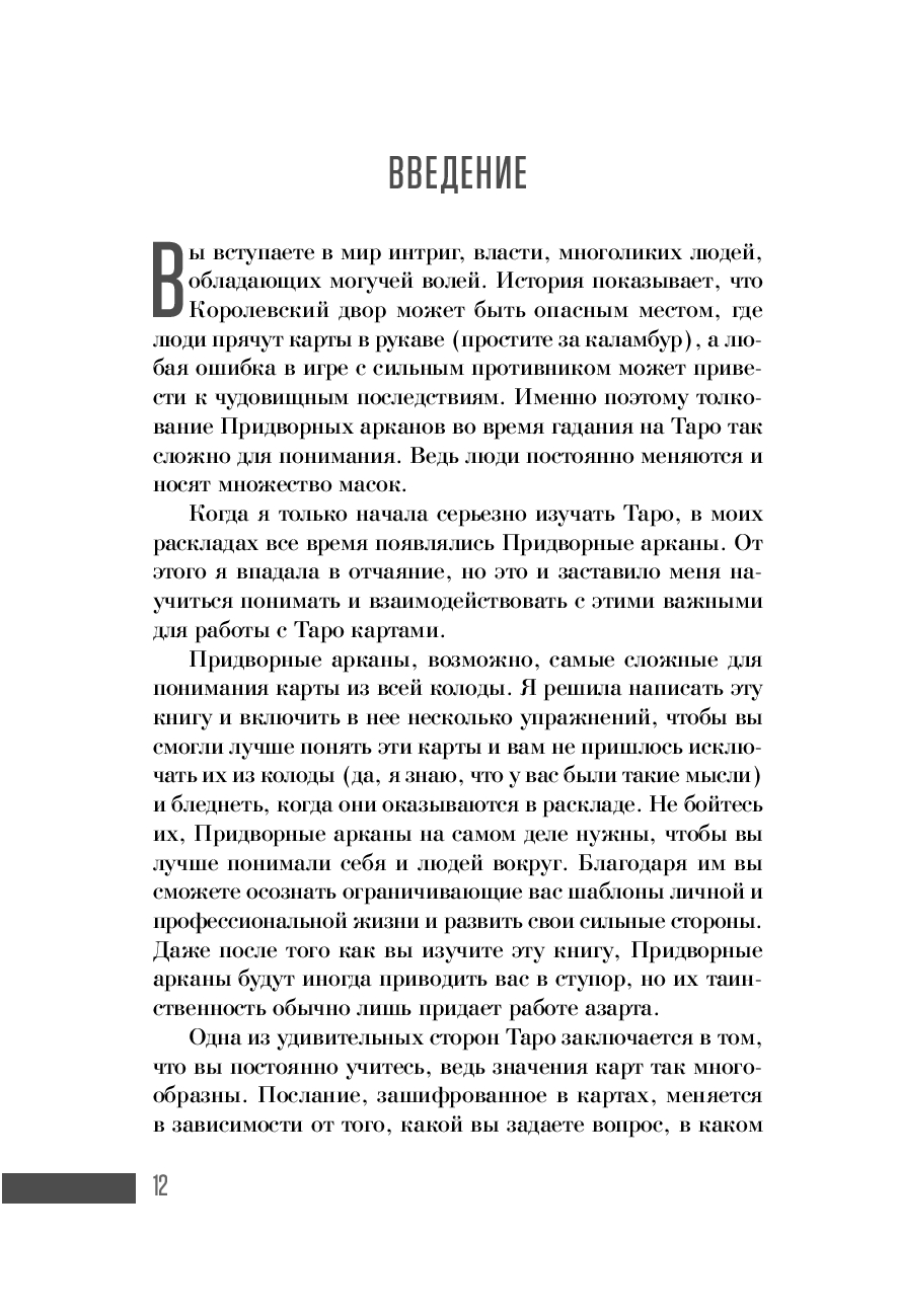 У каждой карты Королевского двора есть особый дар. Кто вам ближе – романтичный и страстный Рыцарь Кубков, или практичный и дисциплинированный Король Пентаклей? Справедливая и рассудительная Королева Мечей, или озорной и творческий Паж Жезлов? Каковы бы ни были ваши намерения, книга поможет вам установить глубокие отношения с энергией карт: даже самый сложный расклад больше не будет вызывать у вас затруднений.