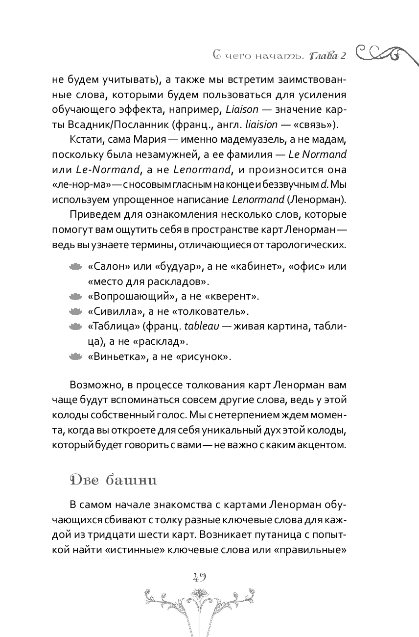 Перед вами подробное руководство по работе с колодой Ленорман – одним из самых популярных в мире оракулов. Эти карты появились в XIX веке в Европе как салонная карточная игра, а затем стали применяться для предсказаний и гаданий. Оракул Ленорман актуален и в современном мире. Карты готовы ответить на любые вопросы обо всем на свете, они станут вашим верным другом и личным советчиком, придут на помощь и поддержат в трудный период, помогут найти оптимальное для вас решение в сложной ситуации.