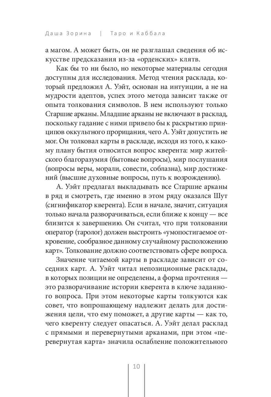 "Таро – это инструмент прорицания, который позволяет соединить две воли – таролога и кверента – в одном и том же символе, который отражается в астральном свете. Это схема миросозерцания посвященных в систему, это язык, алфавит, который позволяет с помощью метода аналогии считывать образы с астрального плана и переводить их на понятный нам язык".