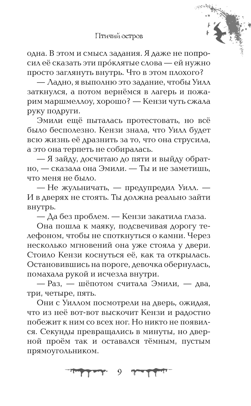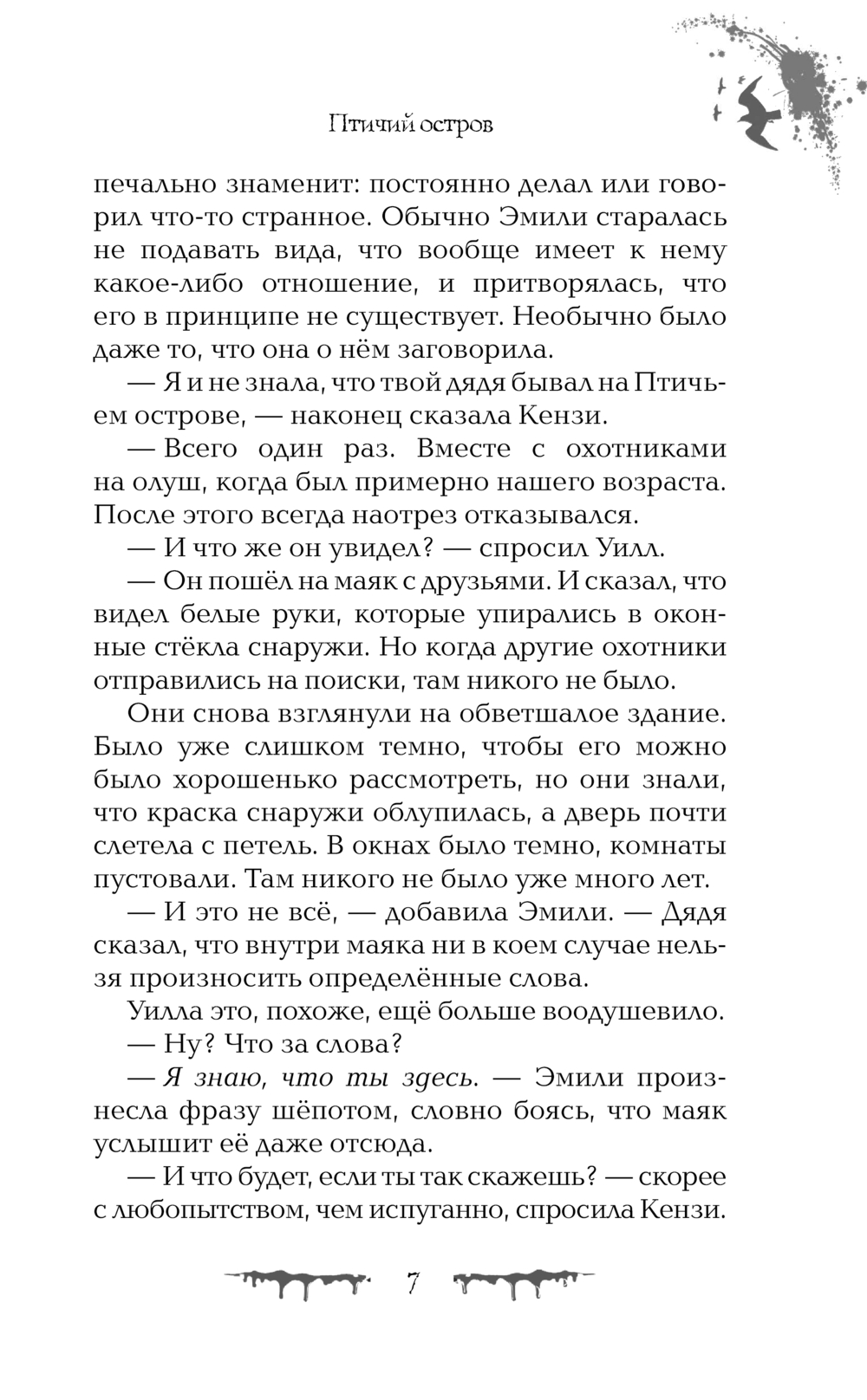 Джесс и её сестра Роузи приезжают на отдалённый Птичий остров, где их отец-орнитолог проводит исследования. Впереди – две недели в старом маяке, окруженном лишь океаном, криками чаек и мрачными историями о пропавших людях.